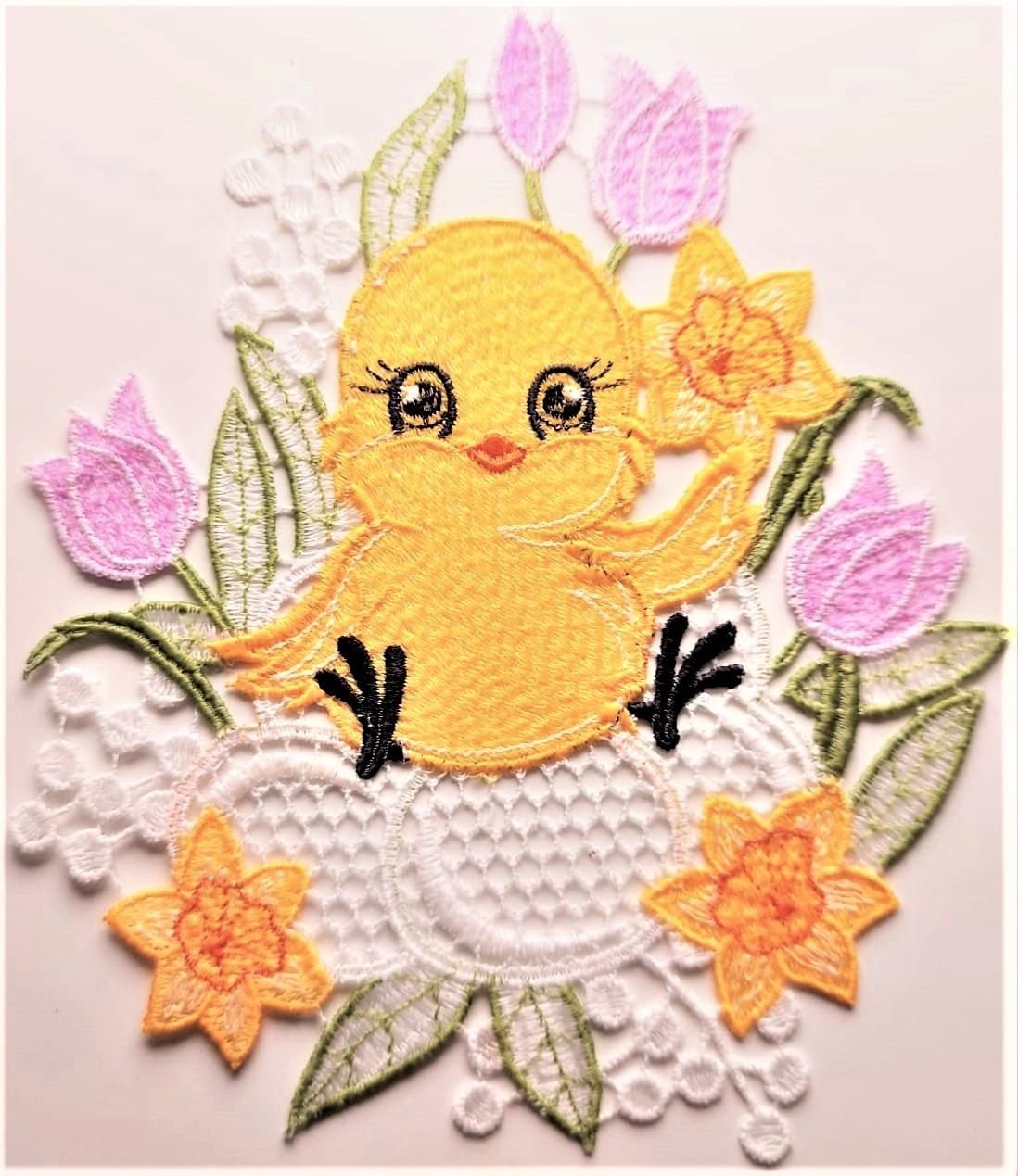 Fensterbild Ostern Plauener Spitze Osterdekoration Fensterdekoration Küken 20 cm