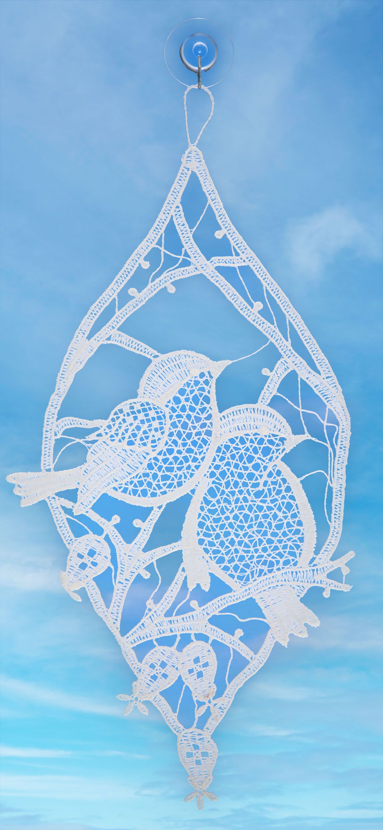 Fensterbild Plauener Spitze Weiß Fensterdekoration Sommer Vogelpaar 24 cm mit Saugnap