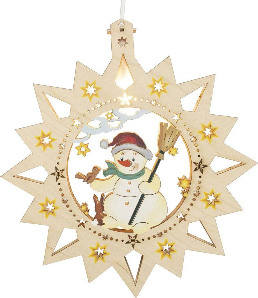 Fensterbild Schneemann, farbig Ø 32cm NEU Fensterdeko Weihnachtsdeko Beleuchtet