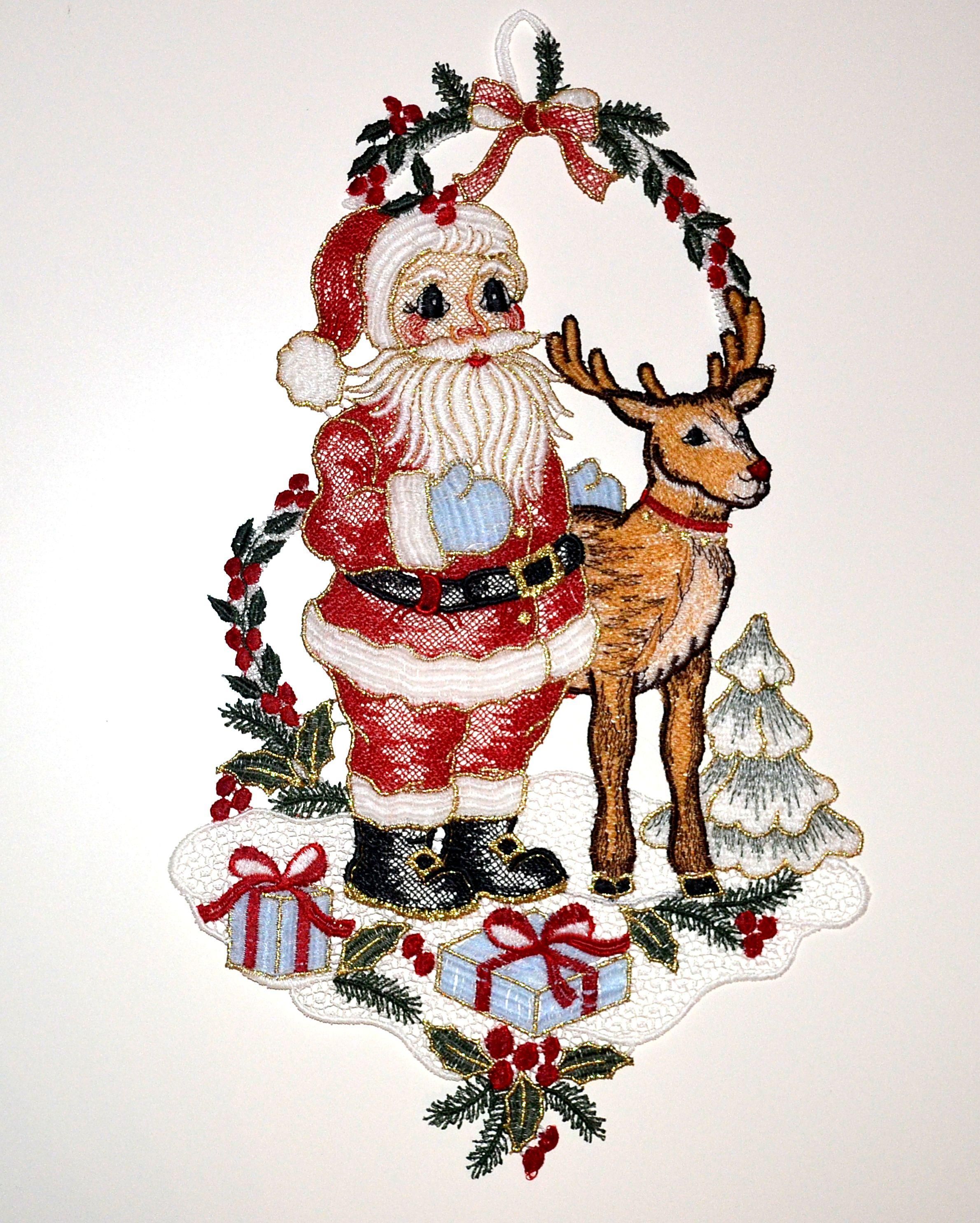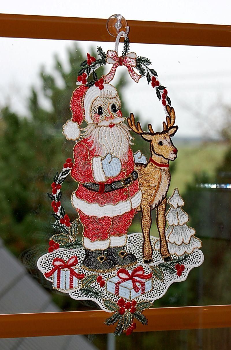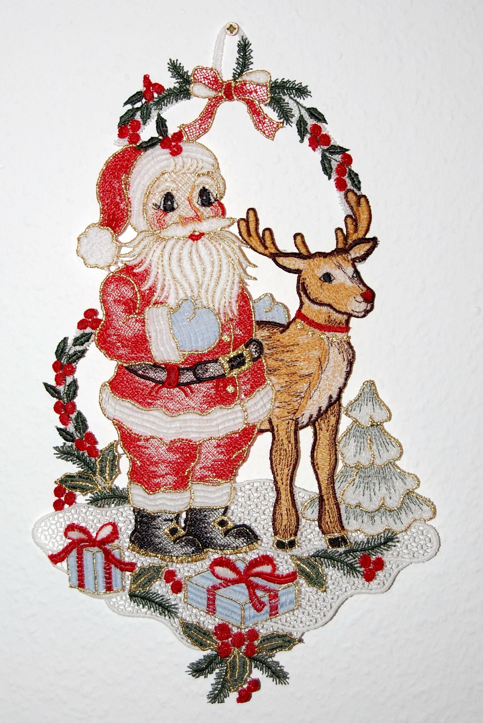 Fensterbild Weihnachten Plauener Spitze Weihnachtsdekoration Santa Rentier 35 cm