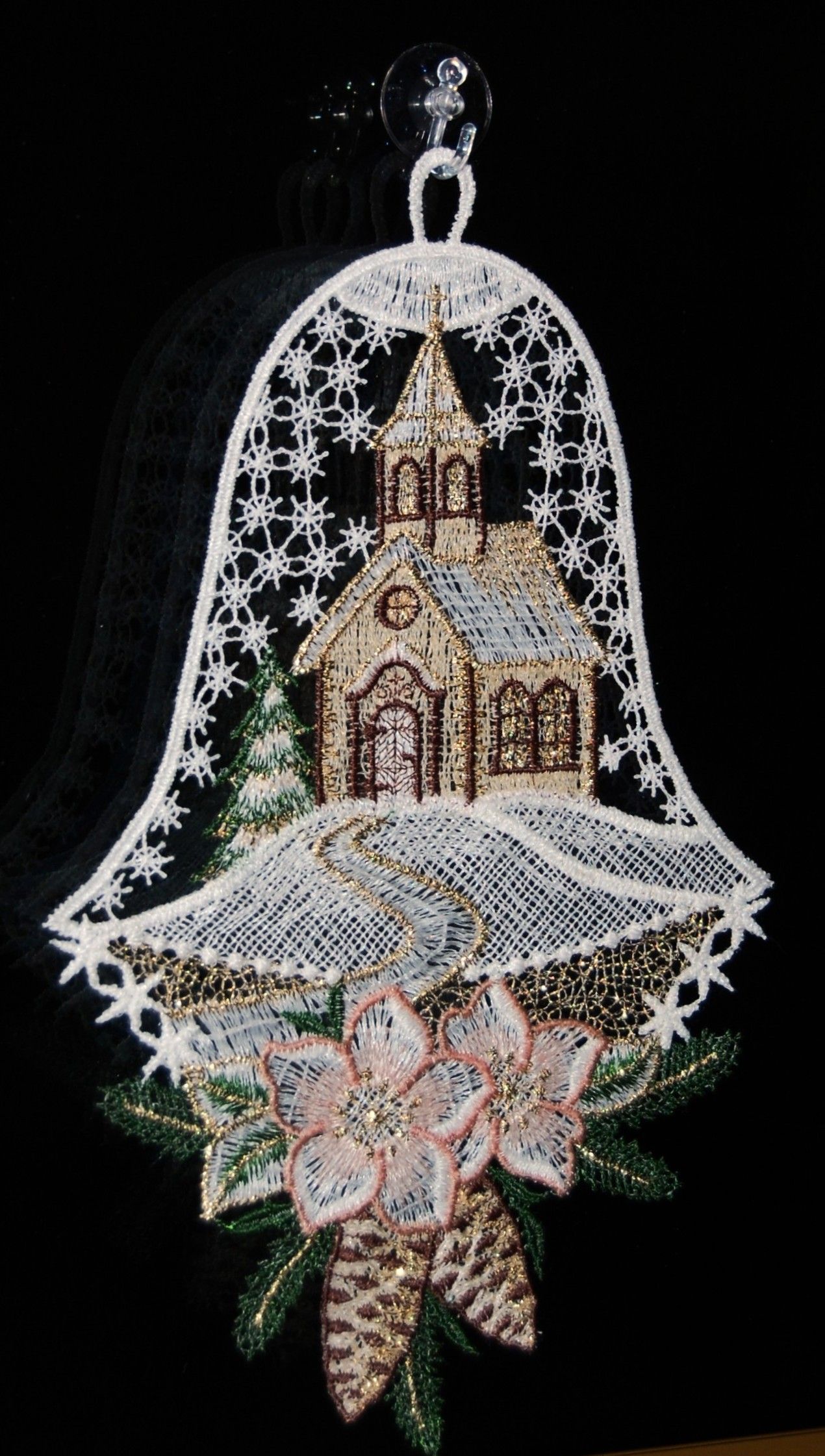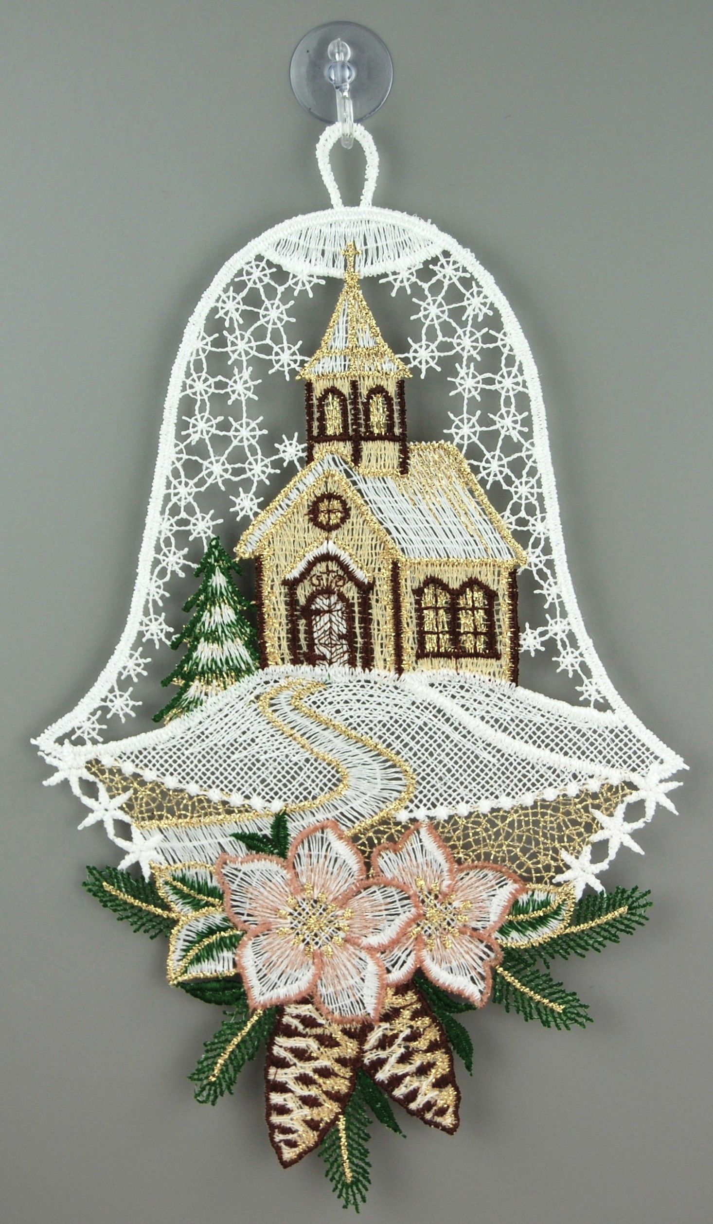 Fensterbild Weihnachten Spitze Fensterdekoration Plauener Stickerei Glocke 27 cm