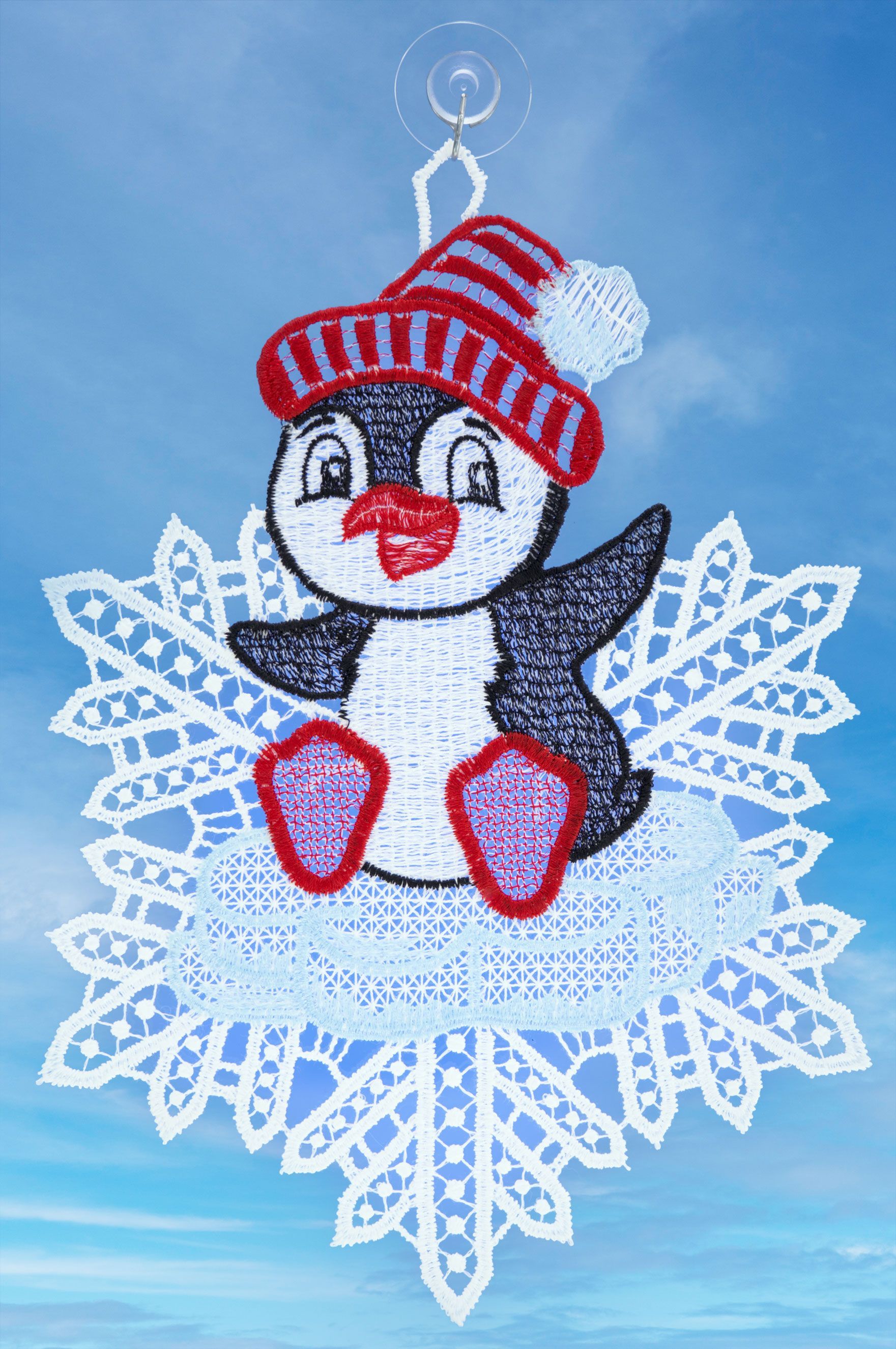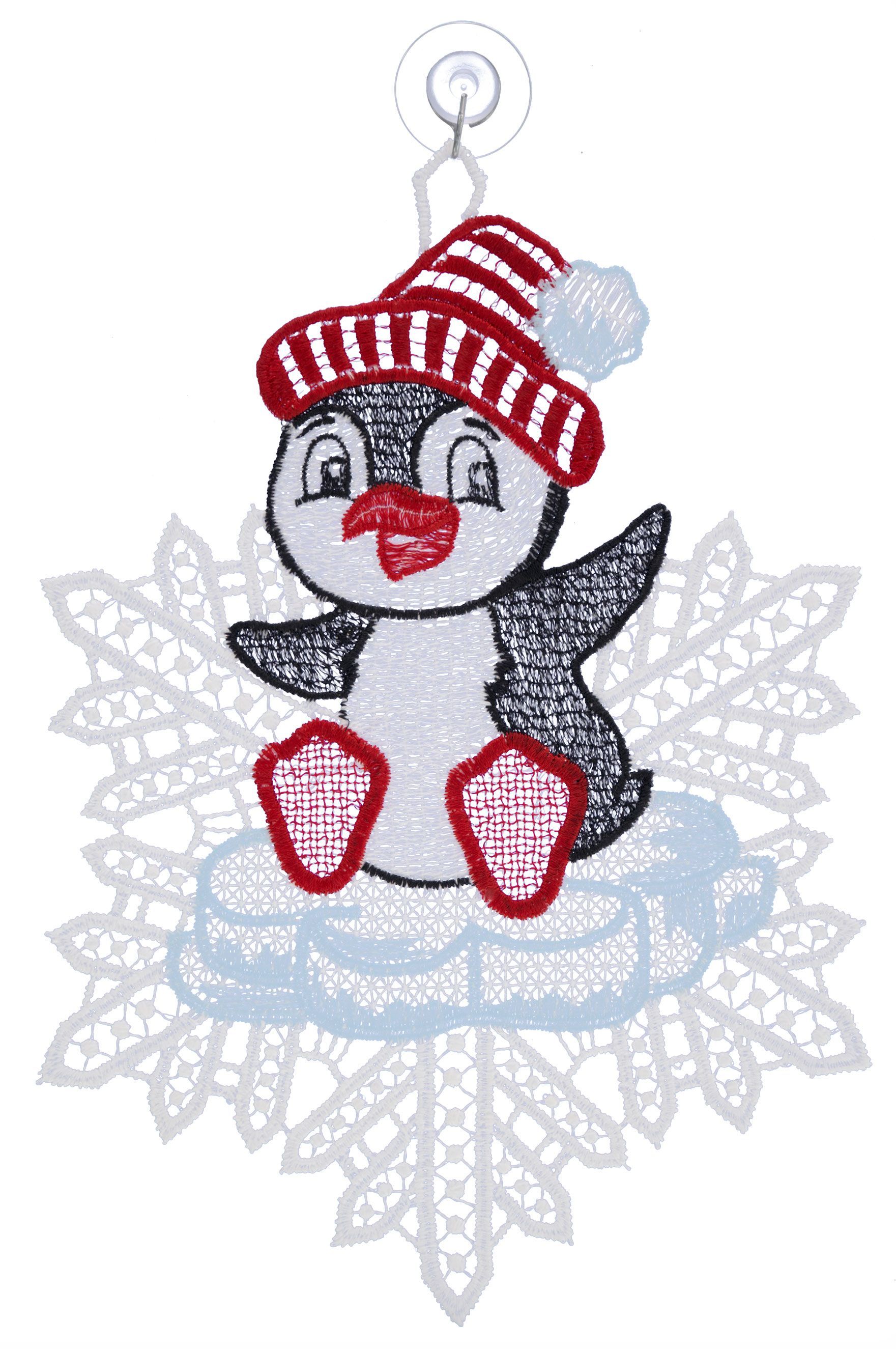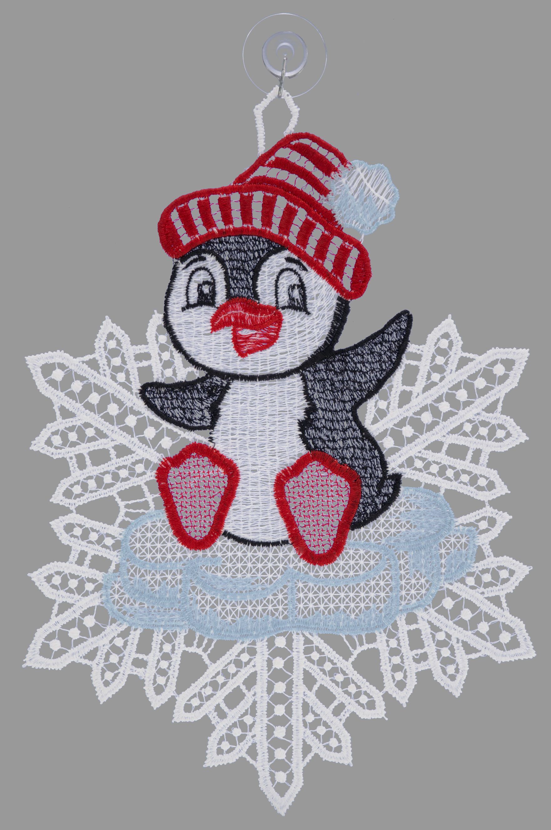 Fensterbild Weihnachten Winter Plauener Spitze Fensterdekoration Pinguin 22 cm