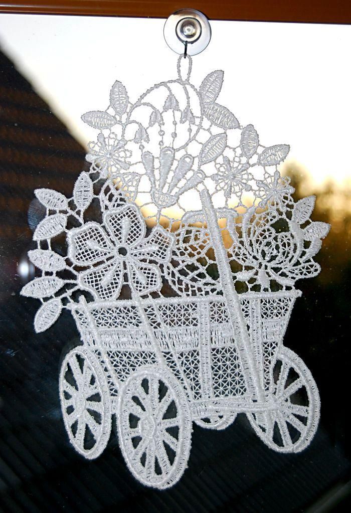 Fensterbild Weiß Plauener Spitze Fensterdekoration Landhaus Sommer Blumen 24 cm