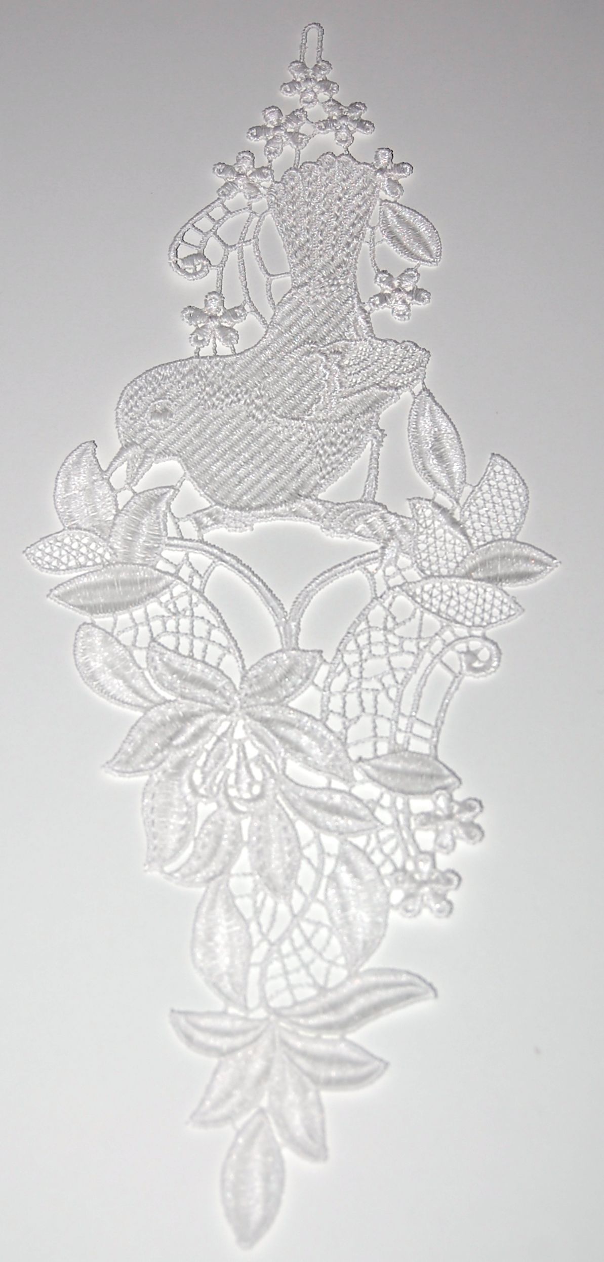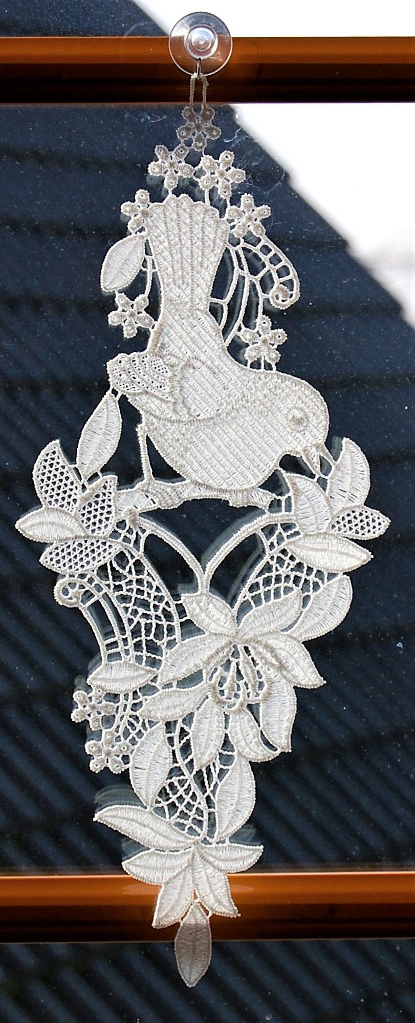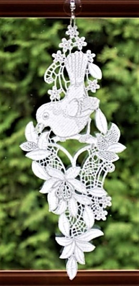 Fensterbild Weiß Plauener Spitze Fensterdekoration Sommer Vogel 36 cm Blumen