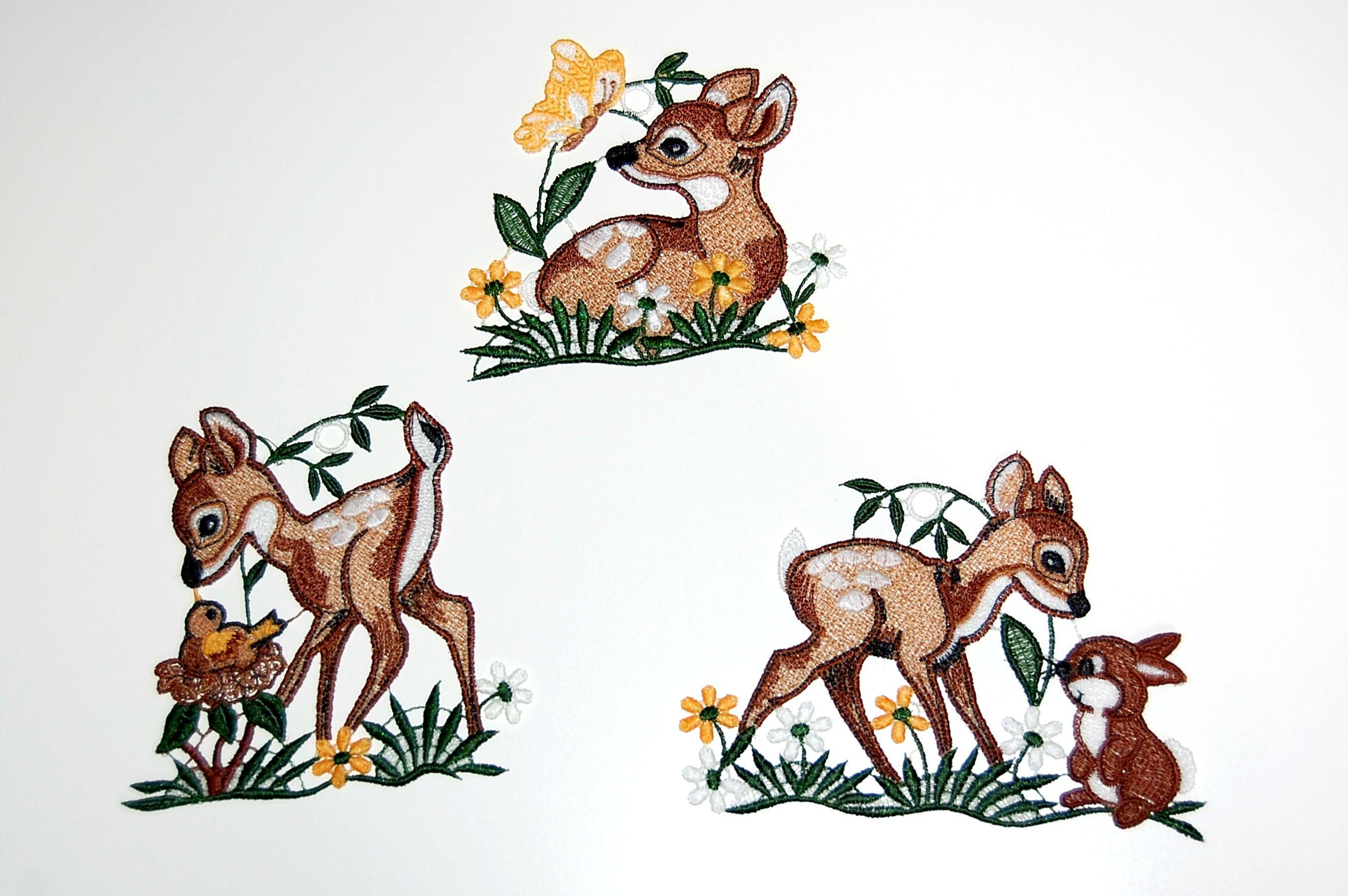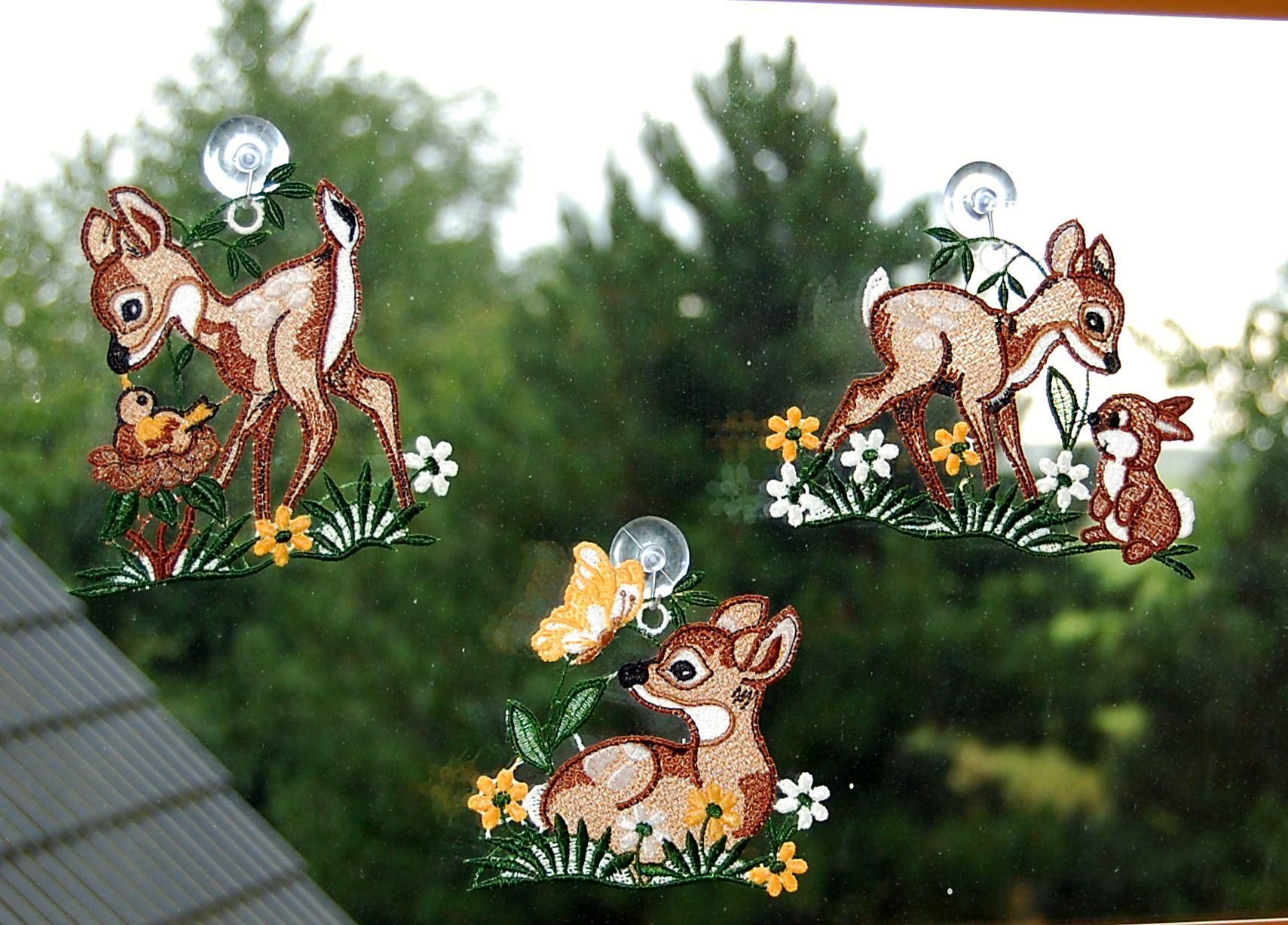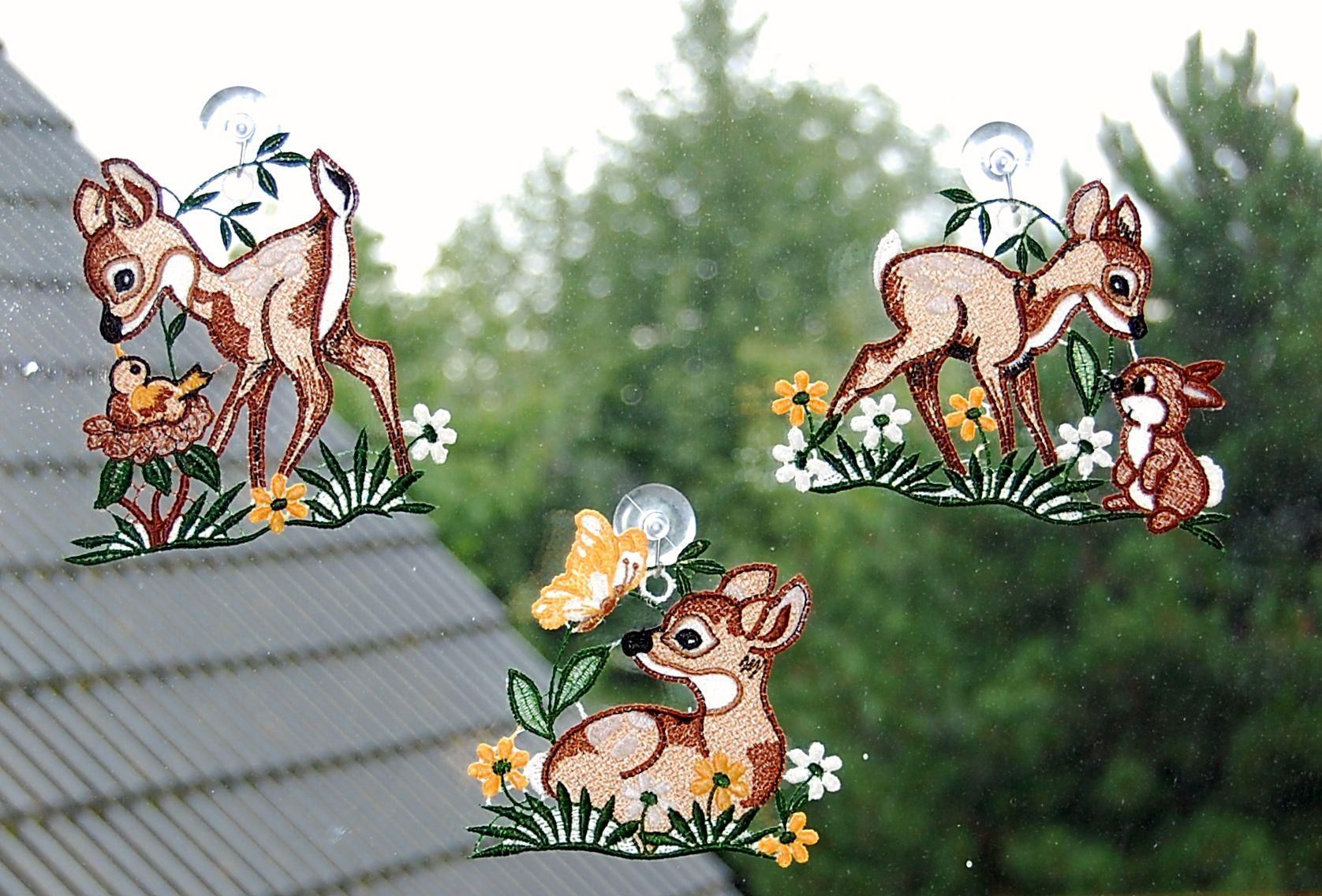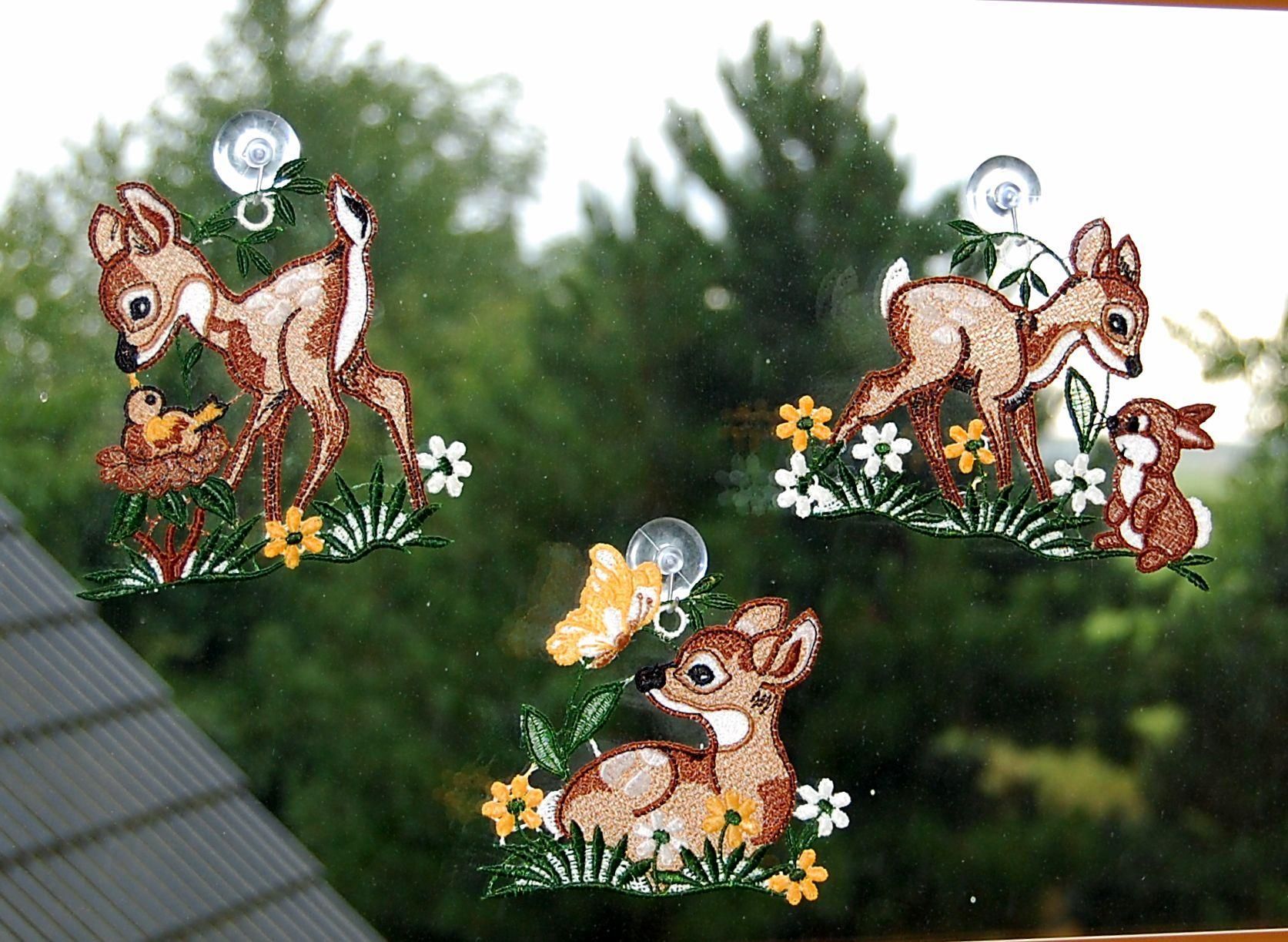 Fensterbilder Set Plauener Spitze Fensterdekoration Hängedekoration Reh Frühling