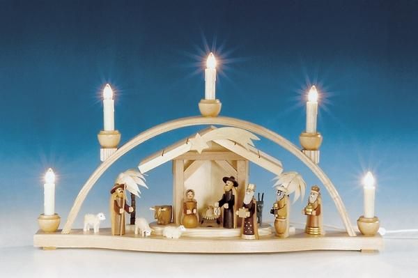 Fensterdekoration Schwibbogen Christi Geburt natur elektrisch Länge 51 cm NEU