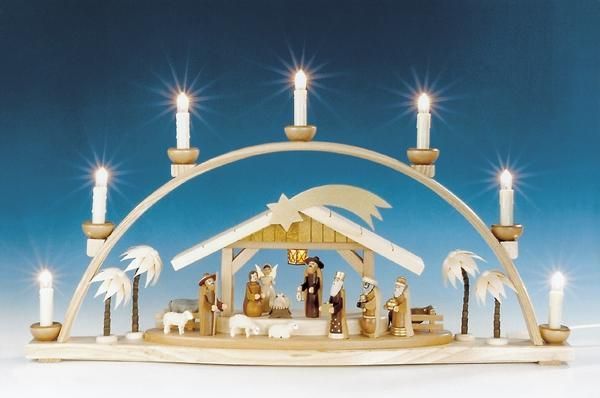 Fensterdekoration Schwibbogen Christi Geburt natur elektrisch Länge 66 cm NEU