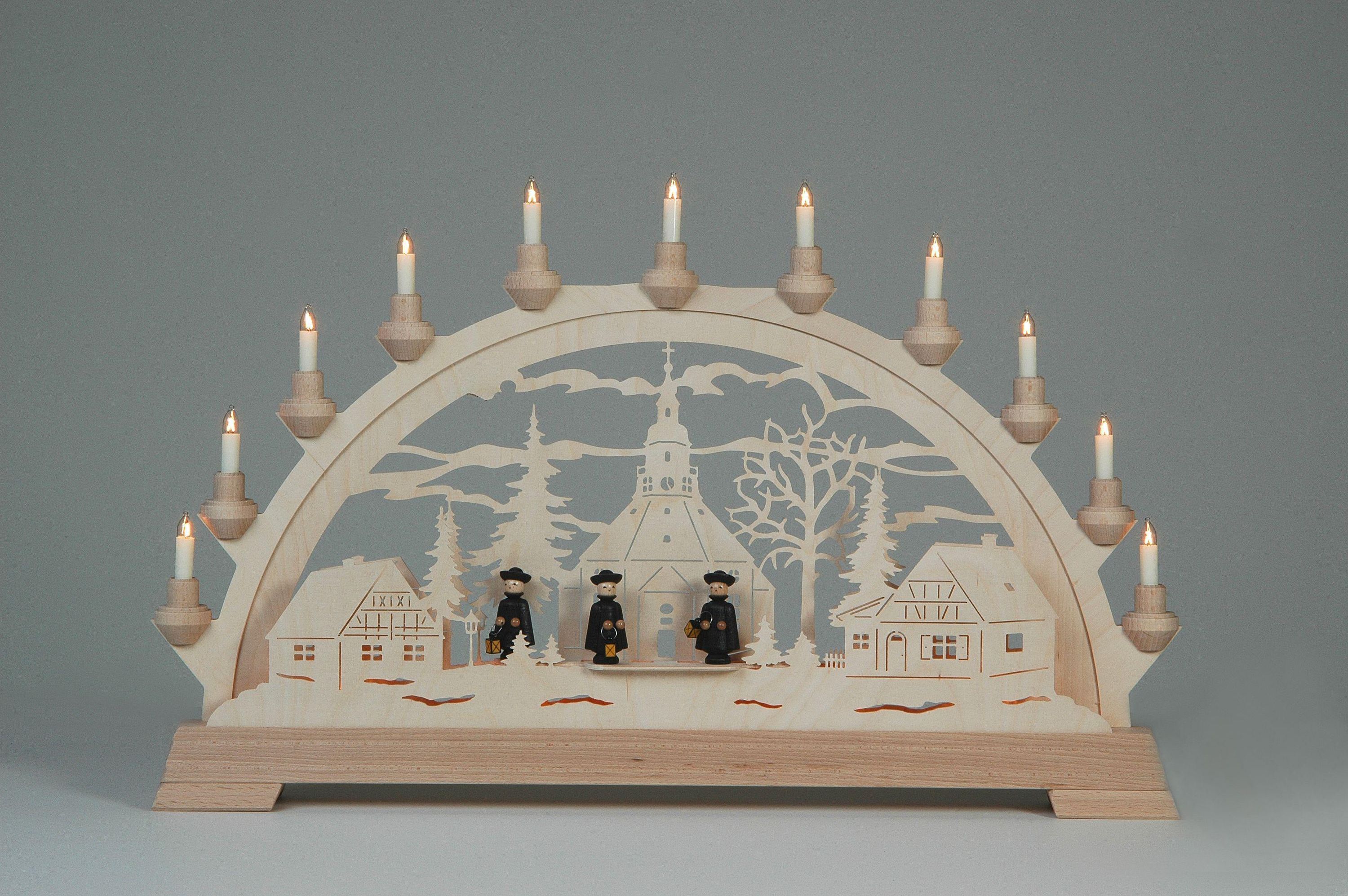 Fensterdekoration Schwibbogen Seiffener Kirche mit Kurrendefiguren BxTxH= 65x6,5