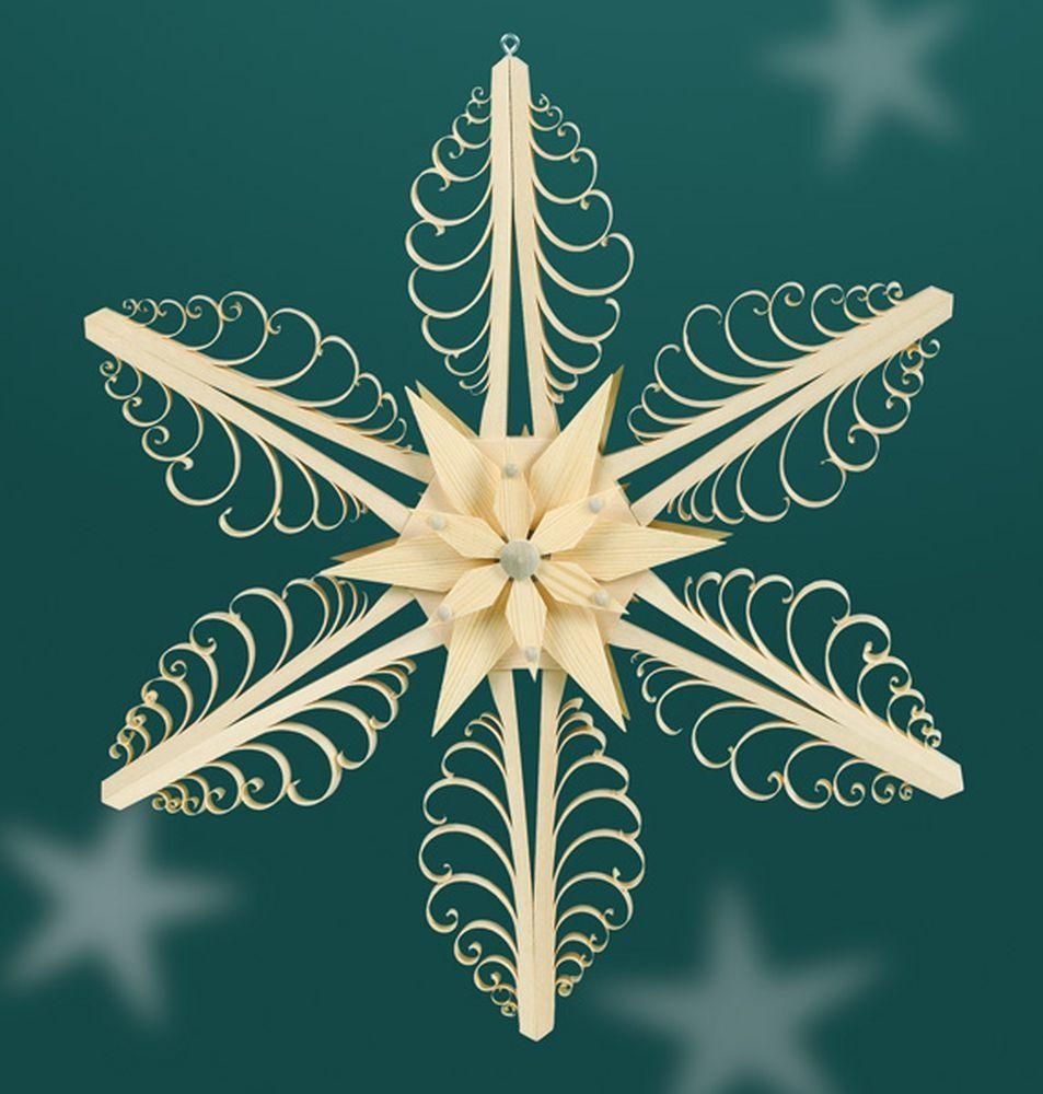 Fensterschmuck Spanstern Mitte mit 2 Kiefersterne 32x32x3,5cm NEU Fensterbild Sp