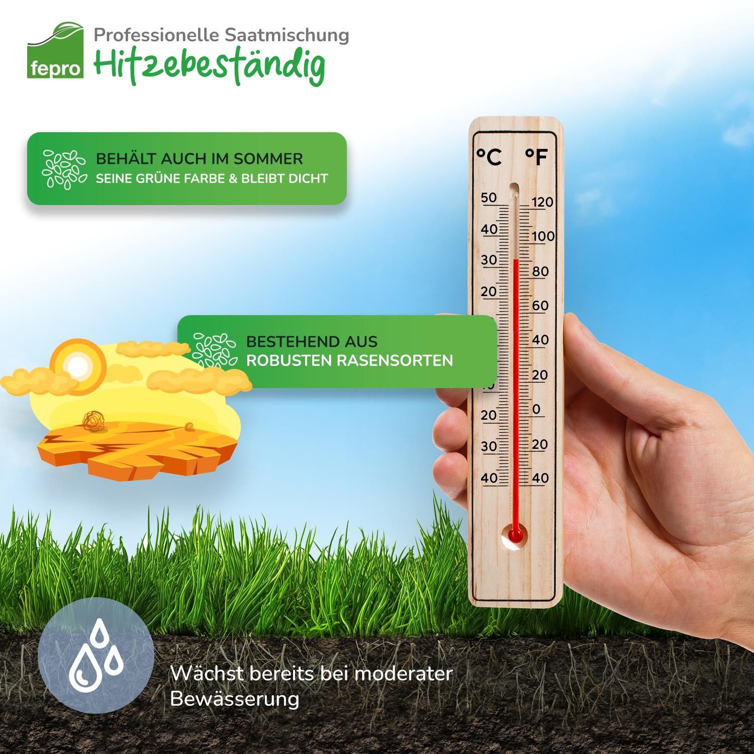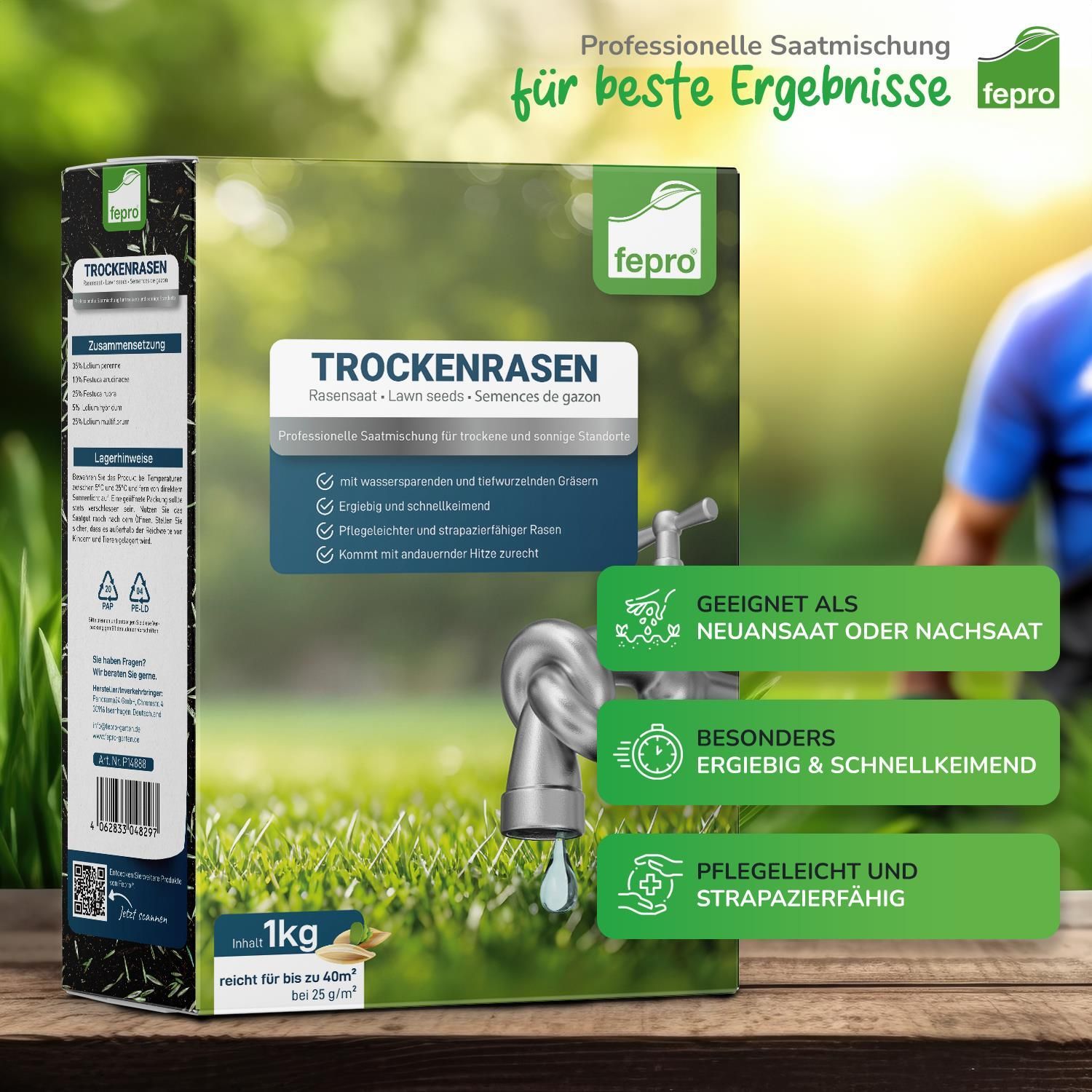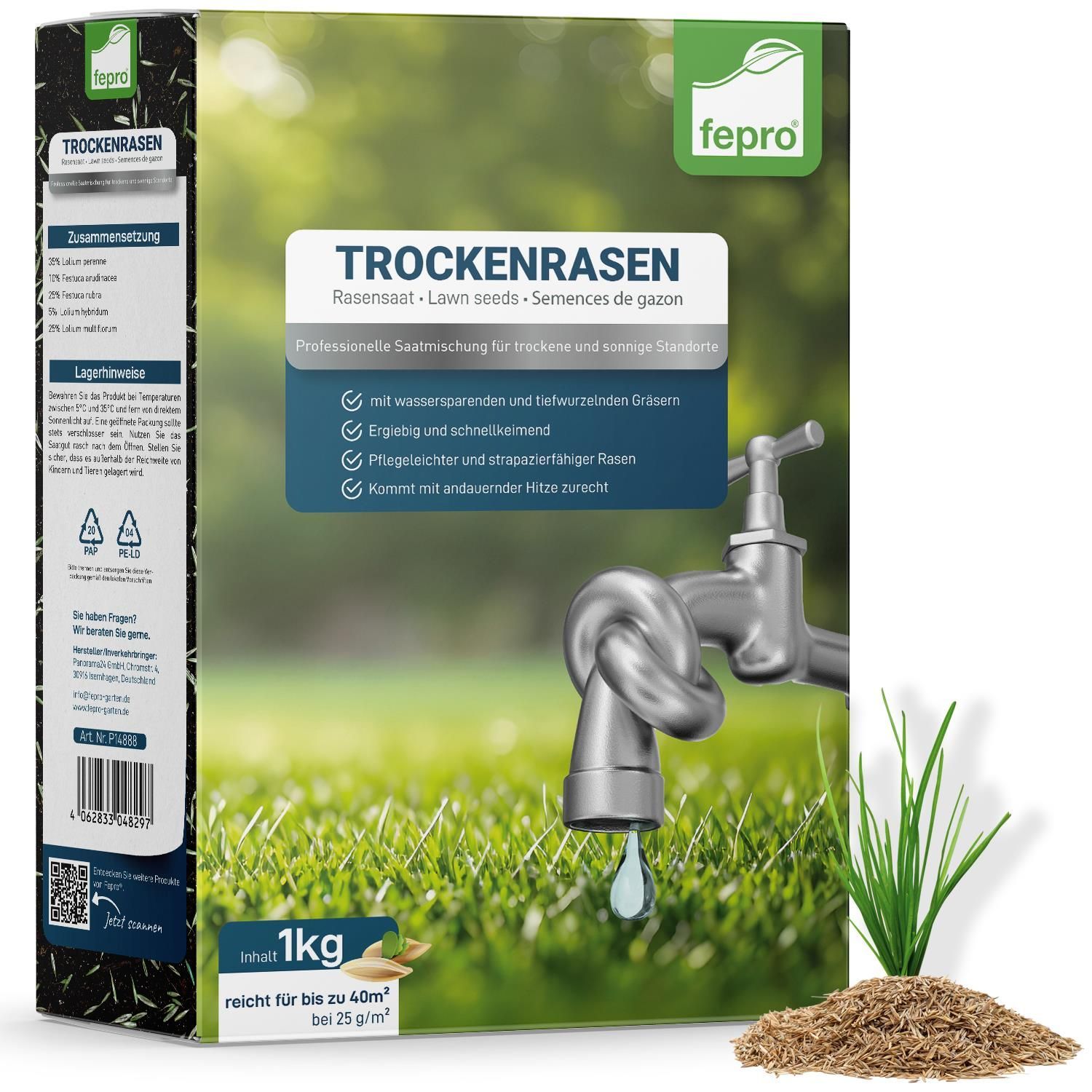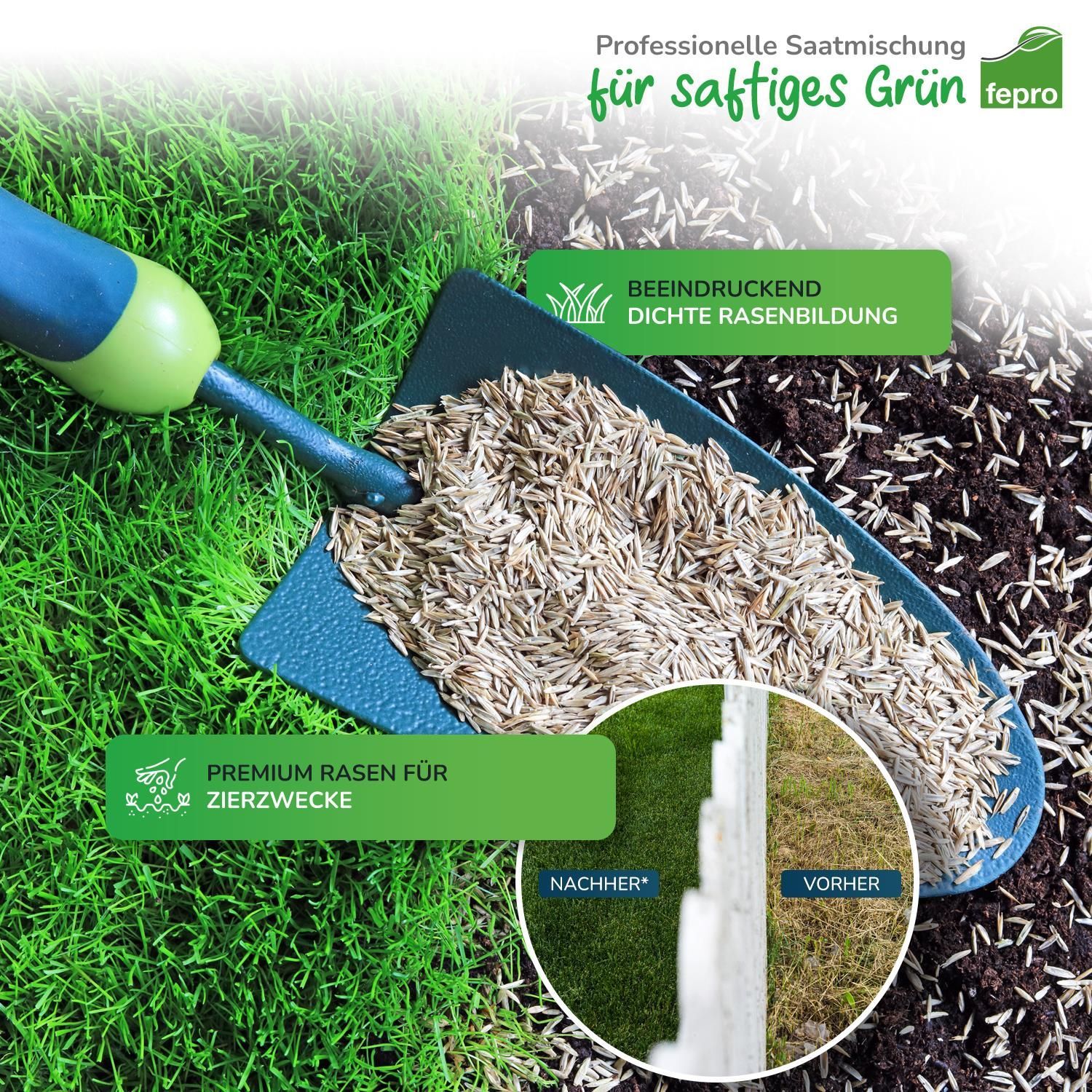 Fepro® Rasenmix Premium Select Mischung und dürreresistenter Trockenrasen für ca