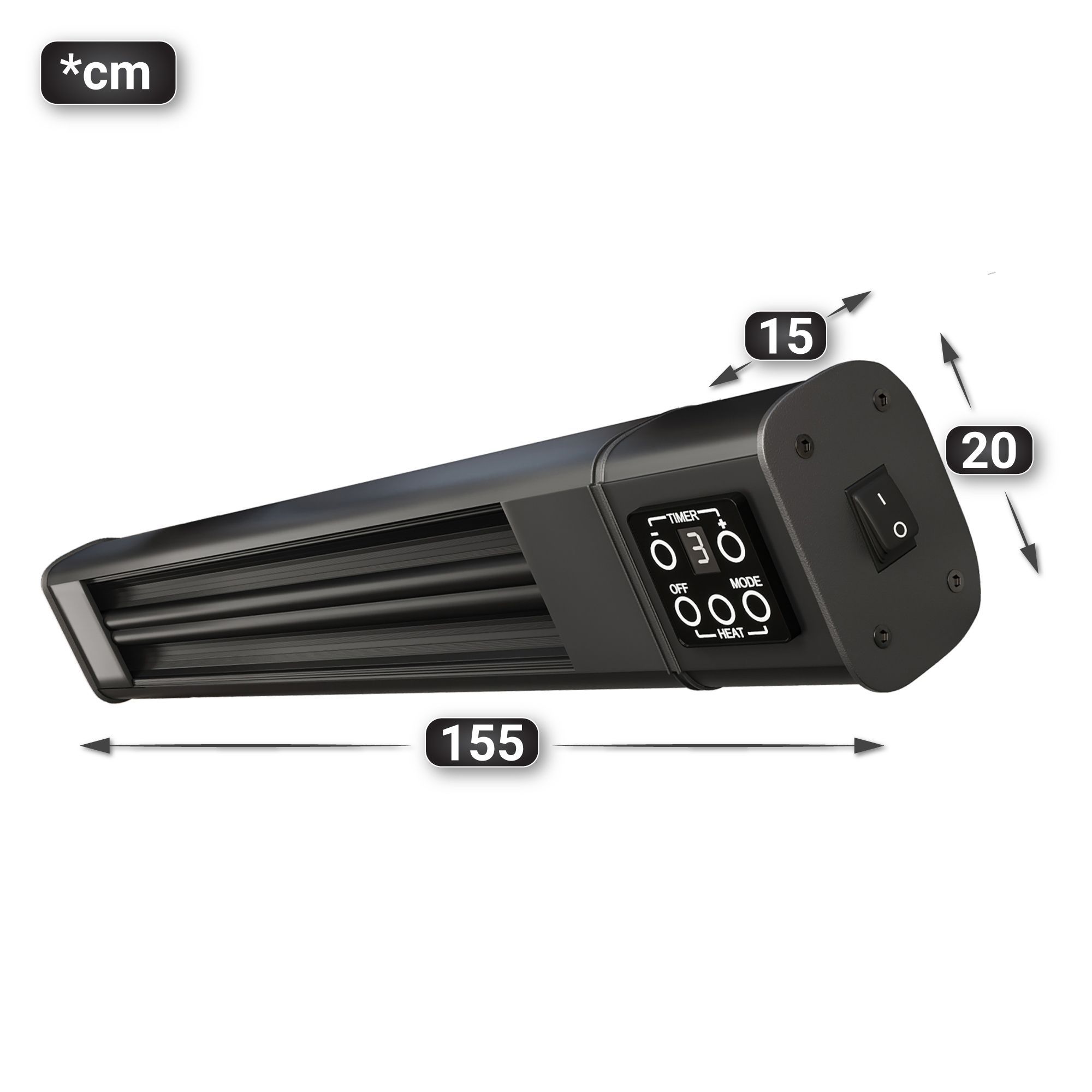 Fernando | Deckenheizstrahler | Schwarz | 2400W | 3 Heizstufen | Heizstrahler Decke,