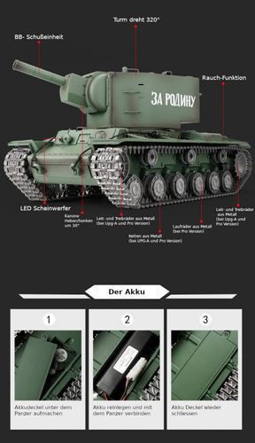 Ferngesteuerter Panzer "Russicher KV-2" Heng Long 1:16 mit R&S, Metallgetriebe (Stahl