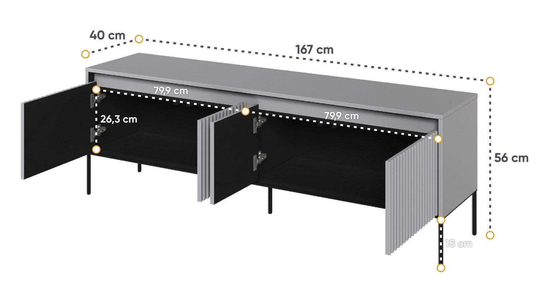 Fernsehschrak Trend TR-05 Tv-Schrank 167x56x40 cm geriffelte Front