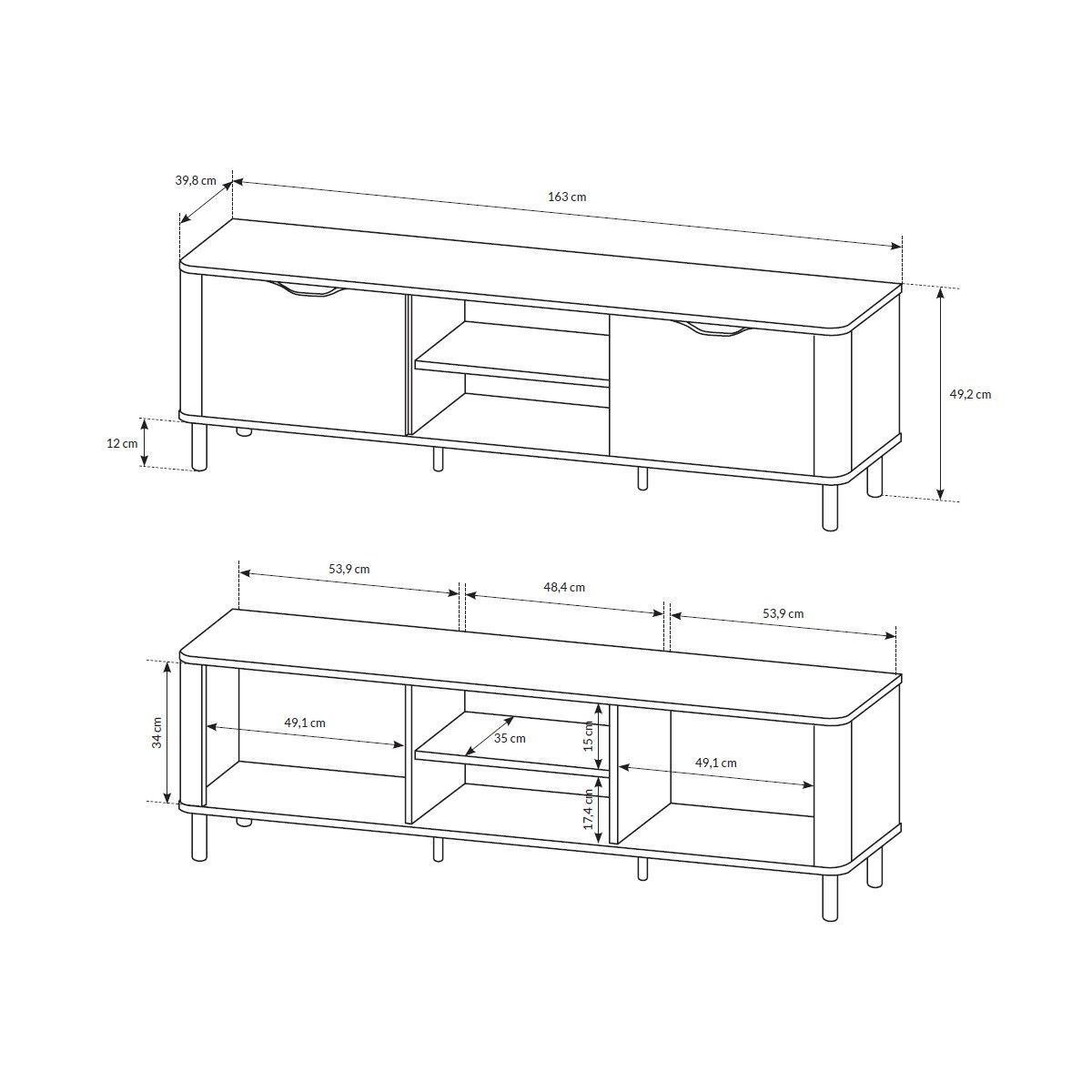 • TV-Lowboard Gesita 2D2SZ TV-Schrank Praktisch Wohnzimmer TV-Kommode M24
