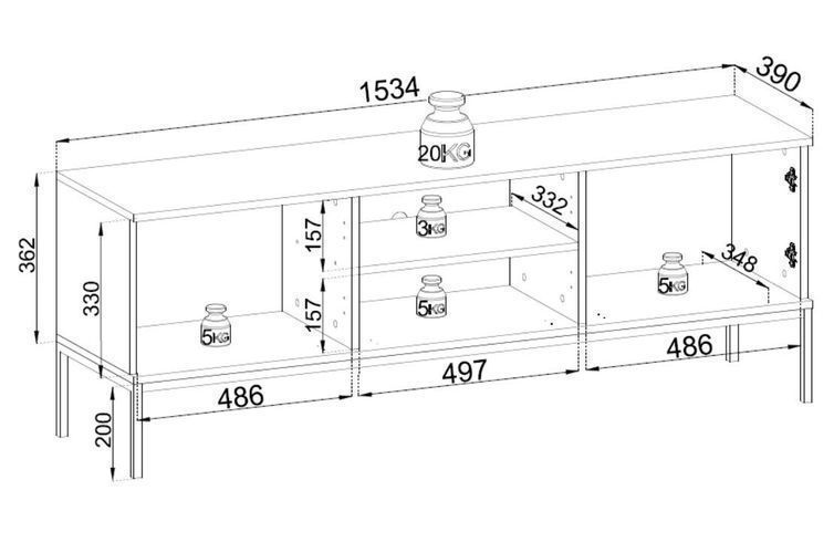 Fernsehschrank SENTO Tv-Schrank Led licht Unterschrank 3 Türen