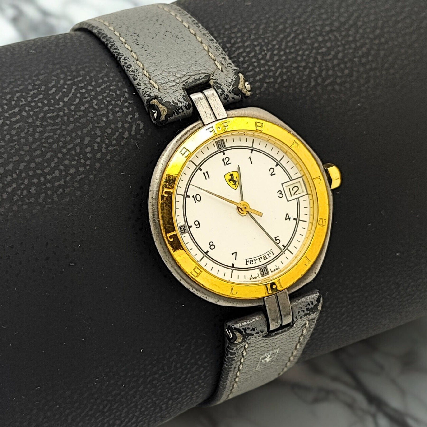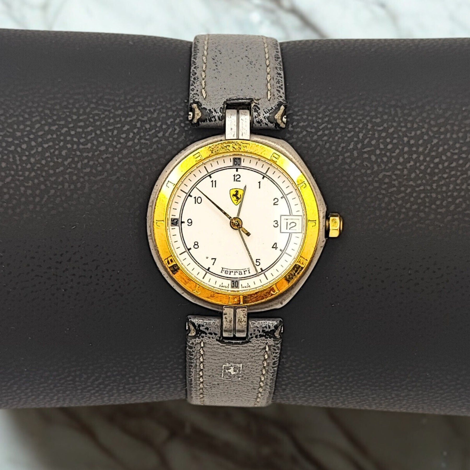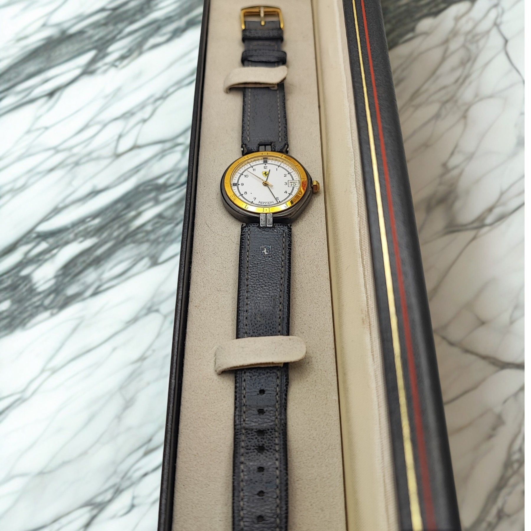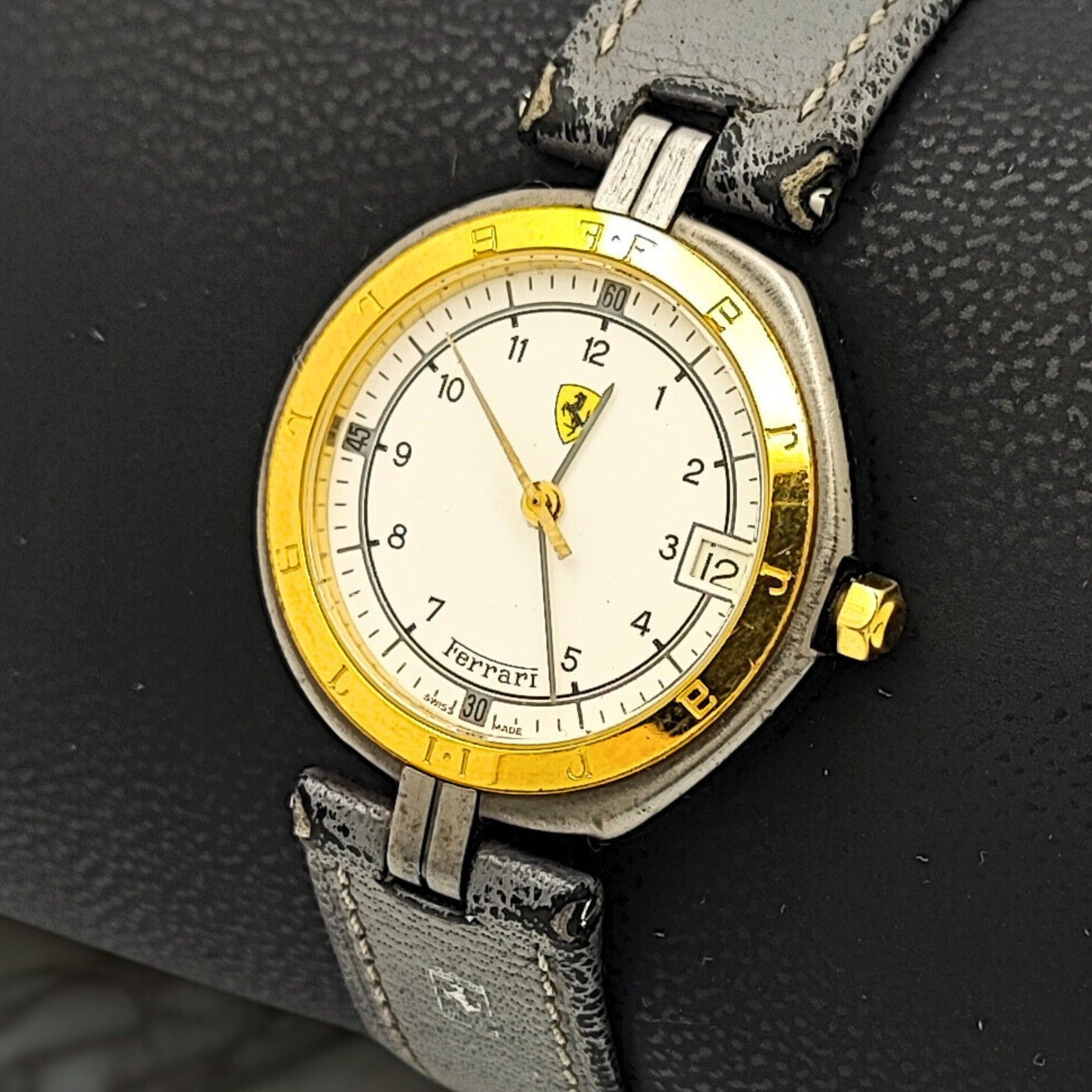 Sammlerstück - Unisex - Ferrari Formula by Cartier - Swiss Made - Gelbgold 18 Karat Diese exquisite Ferrari Formula by Cartier Uhr ist ein echtes Sammlerstück, das Stil und Präzision vereint. Hergestellt in der Schweiz, besticht sie durch ihr elegantes Design und die 18 Karat Gelbgold-Lünette. Das r... Mehr