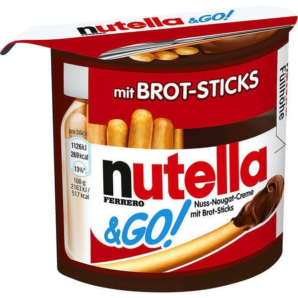 Inverkehrbringer Ferrero Österreich Zutaten Zutatenliste Nuss-Nugat-Creme: Zutaten: Zucker, Palmöl, HASELNÜSSE (13 %), fettarmer Kakao (7,4 %), MAGERMILCHPULVER (6,6 %), SÜSSMOLKEPULVER, Emulgator Lecithine (SOJA), Vanillin. Brot-Sticks: Zutaten: WEIZENMEHL, Palmöl, Salz, Backhefe, GERSTENMALZEXTRAK... Mehr