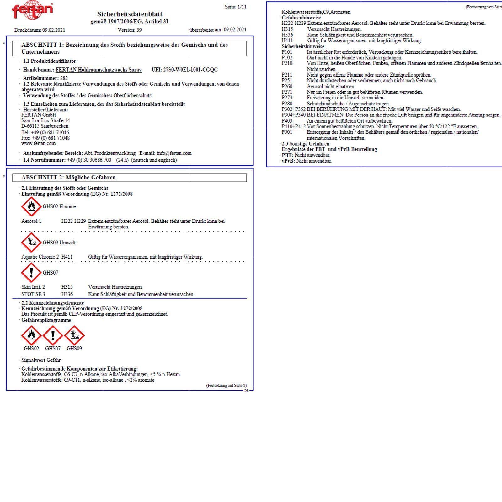 FERTAN Hohlraum Schutzwachs 0.5 LTR SPRAY Autopflege für Hauben, Säulen usw