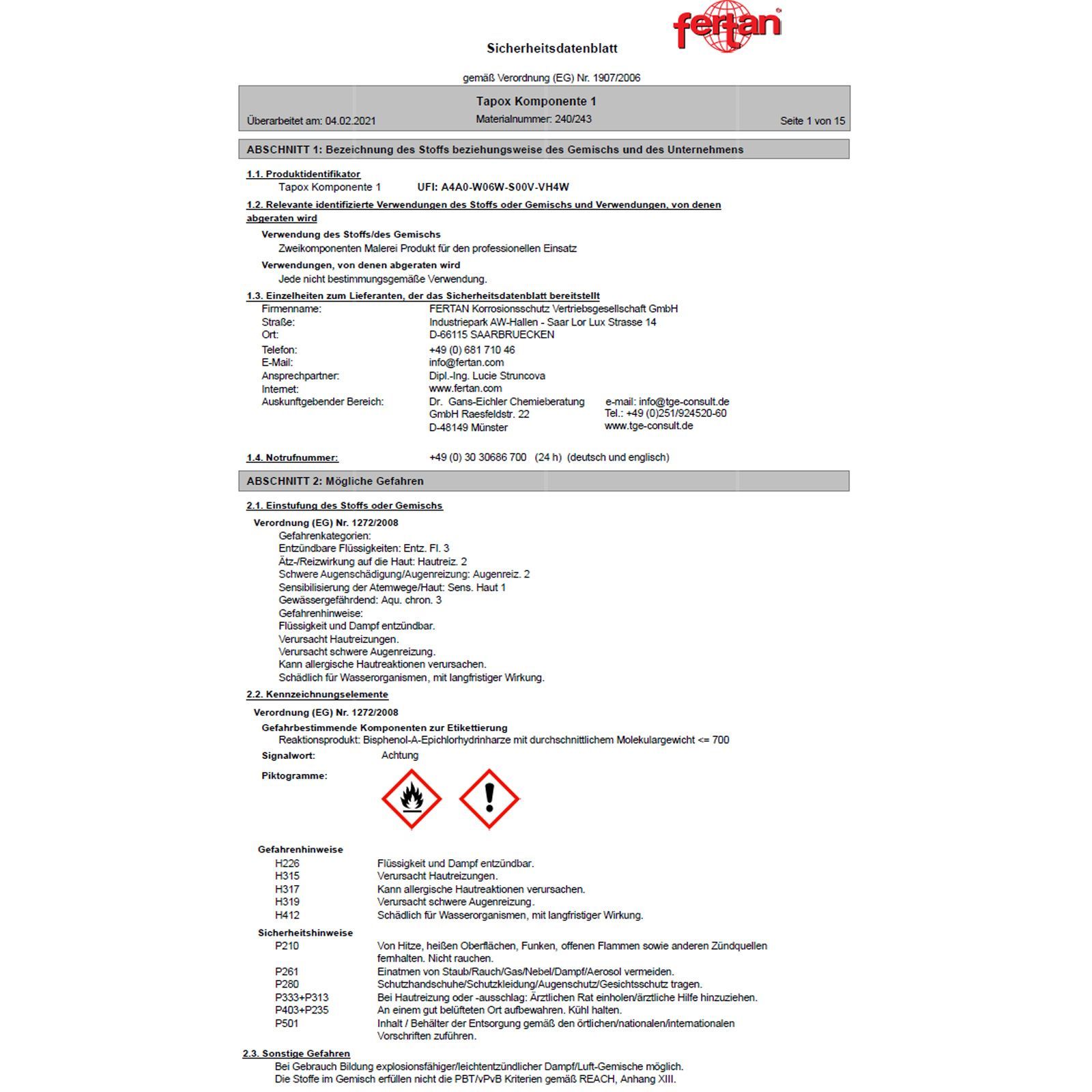 • Flüssigkeit und Dampf entzündbar.