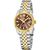 Swiss Made, schicke Armbanduhr für Frauen, präzises Schweizer Quarzwerk Ronda 775, Datumsanzeige mit Lupe, dunkelbraunes Sunray-Zifferblatt, lumineszierende Zeiger und Indizes, zentraler Sekundenzeiger, poliertes Edelstahlgehäuse, matte Bandansätze, gezahnte, gold plattierte Lünette, verschraubter Gehäuseboden, verschraubte Krone mit Logo, kratzfestes Saphirglas, Armband aus teilmattiertem Edelstahl, mittig gold plattiert, Sicherheitsfaltschließe mit Logo, wasserdicht bis 10 bar, Breite (ohne Kr