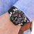 schöne Uhr für Männer, aus der Kollektion Chrono Bike, präzises japanisches Quarzwerk, Datumsanzeige, Stoppfunktion bis zu 12 Stunden in Sekundenschritten, schwarzes Zifferblatt mit verschiedenen Ebenen, goldfarbene Akzente, lumineszierende Zeiger, goldfarbene und weiße Indizes, kleine Sekundenanzeige, mattiertes Edelstahlgehäuse, polierte Kanten, schwarz beschichtete Lünette mit Minutenskala, verschraubter Gehäuseboden, verschraubte Krone mit Logo, kratzunempfindliches Mineralglas, Armband aus