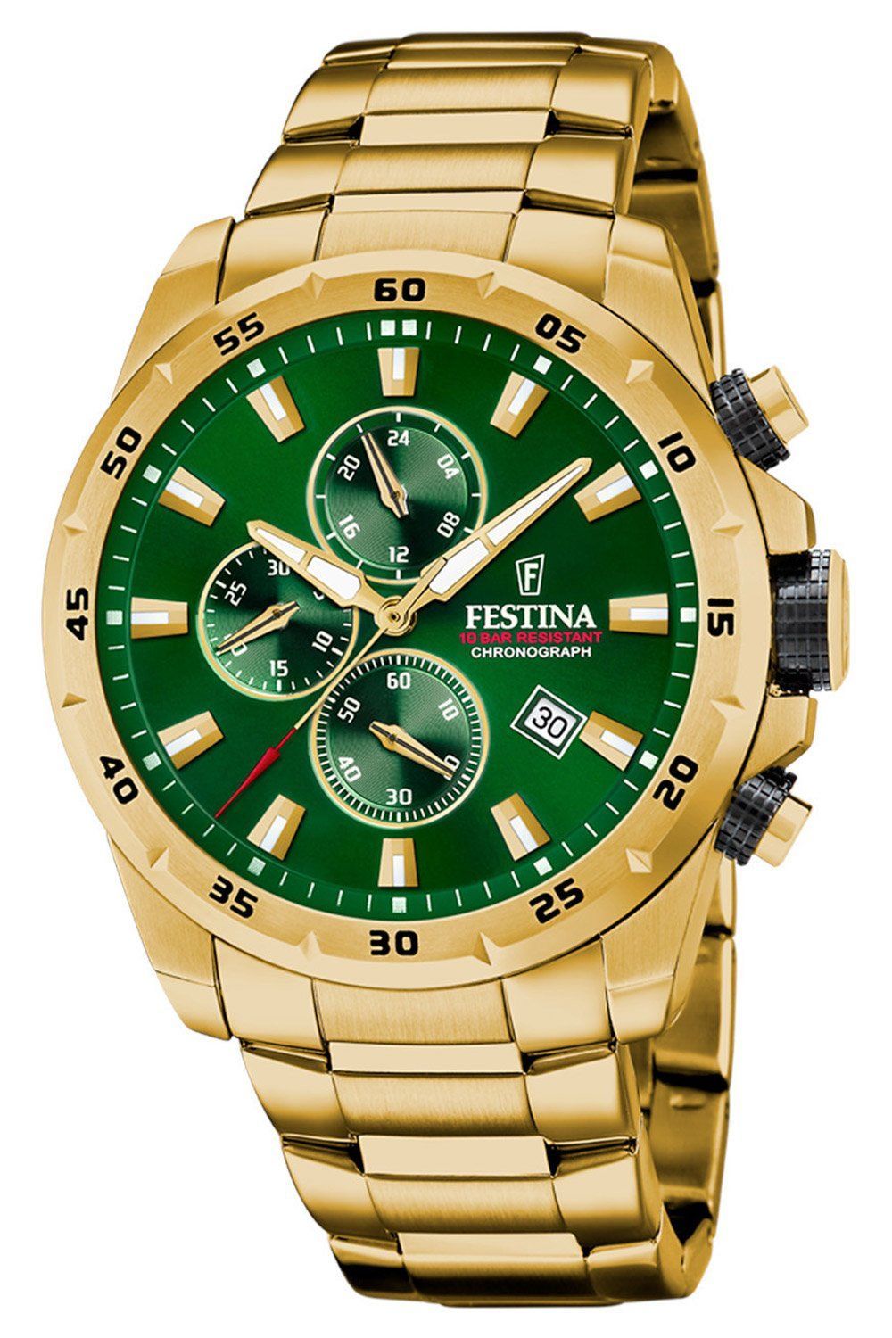 Festina Festina Herren-Armbanduhr Chronograph Goldfarben/Grün F20541/3
