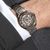 besondere Armbanduhr für Männer, aus der Kollektion Automatik, japanisches mechanisches Uhrwerk mit automatischem Aufzug, transparentes Skelett-Zifferblatt mit Sicht auf das Uhrwerk, lumineszierende Zeiger, polierte römische Ziffer und Indizes, poliertes Edelstahlgehäuse, grau plattiert, matte Bandansätze, verschraubter Glas-Gehäuseboden, geriffelte Krone mit Logo, kratzfestes Saphirglas, Armband aus teilmattiertem, grau plattiertem Edelstahl, Sicherheitsfaltschließe mit Logo, wasserdicht bis 5
