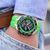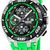 coole Uhr für Männer, aus der Kollektion Chrono Bike, präzises japanisches Quarzwerk, Datumsanzeige, Stoppfunktion bis zu 12 Stunden in Sekundenschritten, schwarzes Zifferblatt mit verschiedenen Ebenen, neongrün akzentuierte Hilfszifferblätter, lumineszierende Zeiger, schwarze Indizes, kleine Sekundenanzeige, mattiertes Edelstahlgehäuse, polierte Kanten, schwarz beschichtete Lünette mit Minutenskala, verschraubter Gehäuseboden, verschraubte Krone mit Logo, kratzunempfindliches Mineralglas, Armba
