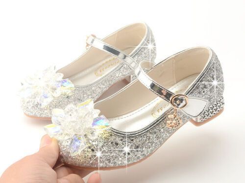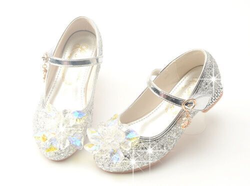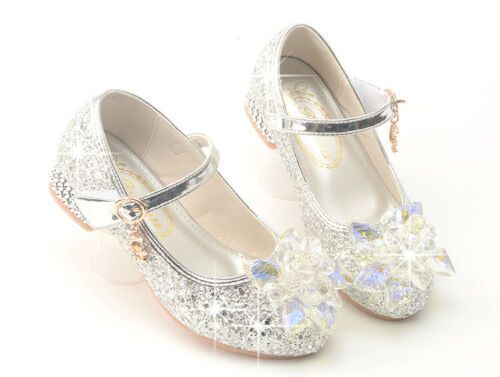 Festliche Kinder Madchen Schuhe Absatz Glitzer Hochzeit Party Prinzessin Schuhe
