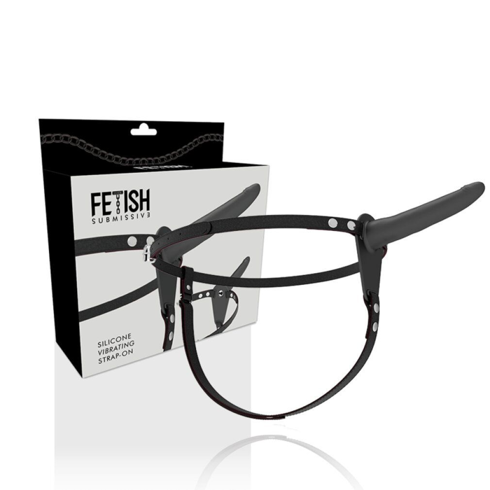 FETISH Submissive Silicone STRAP-ON Vibrator BLACK 15CM