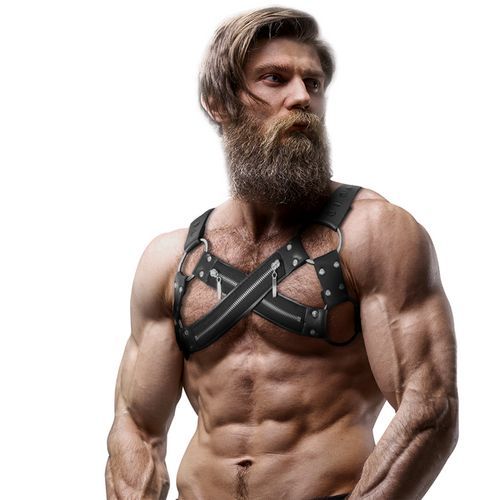 FETISH Submissive – Verstellbares Neopren-Crossover-Bulldog-Brustgeschirr mit Reißver