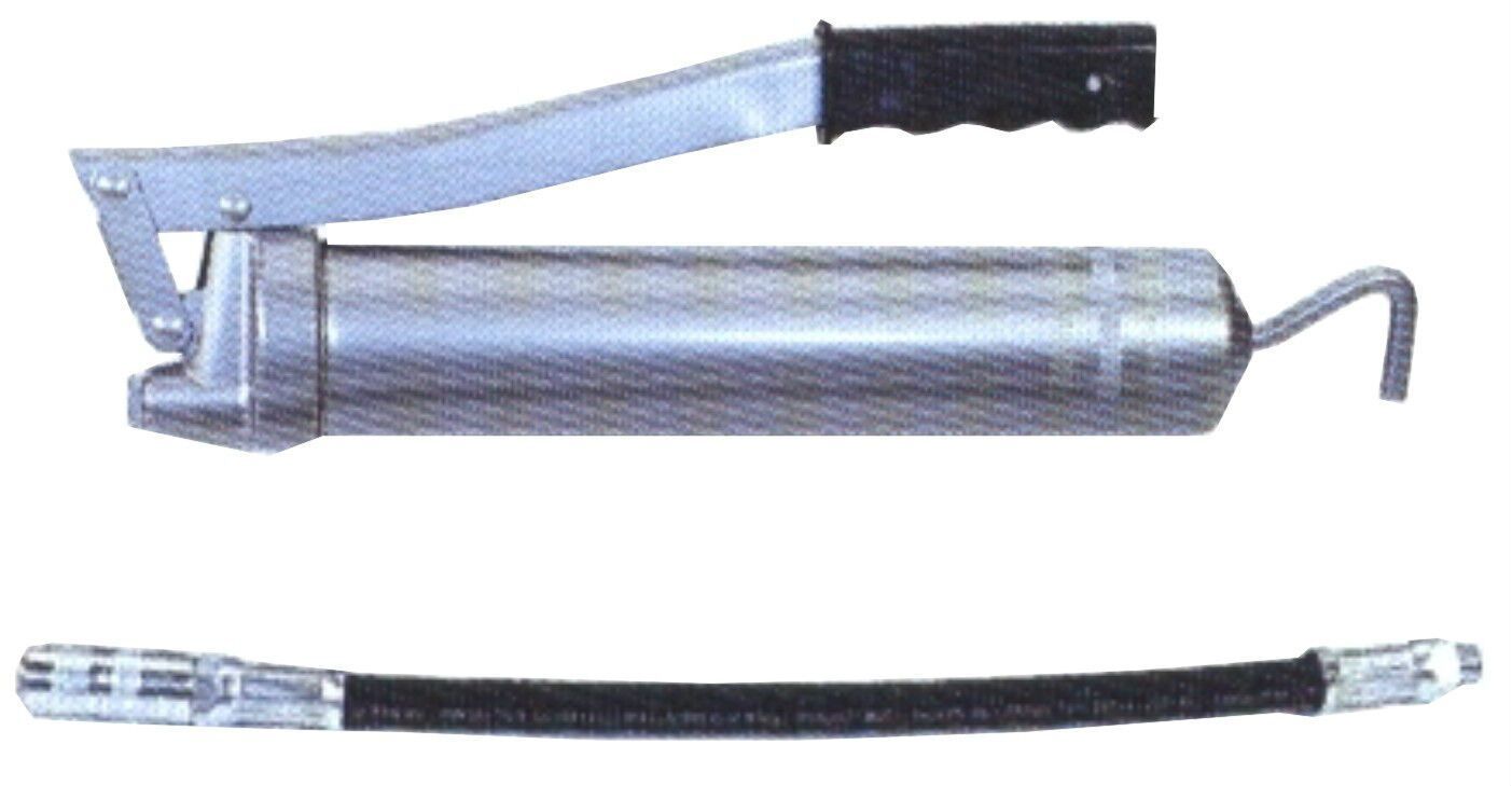 Fettpresse aus Präzisionsstahl für Fettpatronen und lose Füllung Länge 290 mm Inhalt 500 ccm mit Gummipanzerschlauch 300 mm mit Hydrauliknippel Art.-Nr. 7062.006