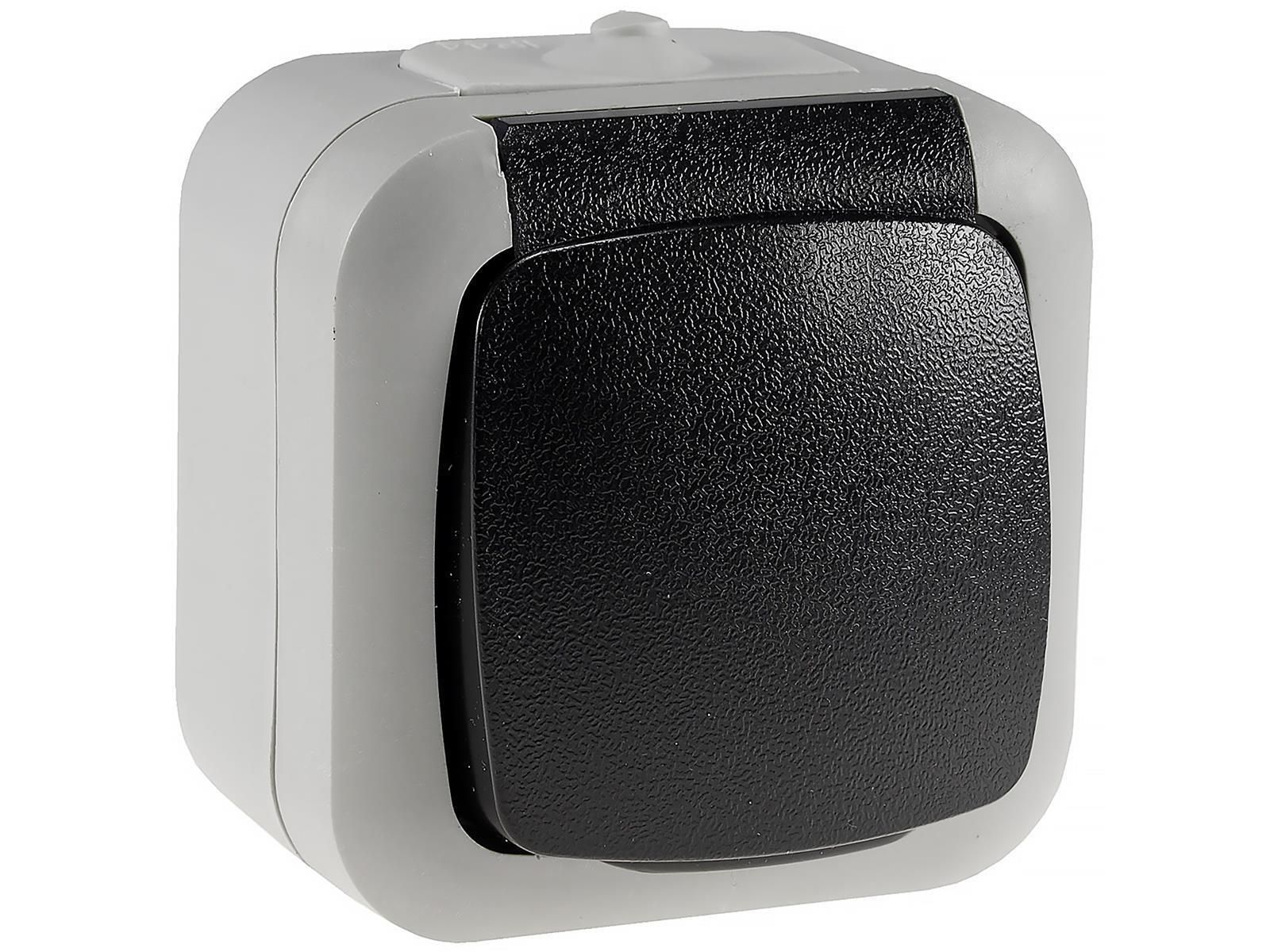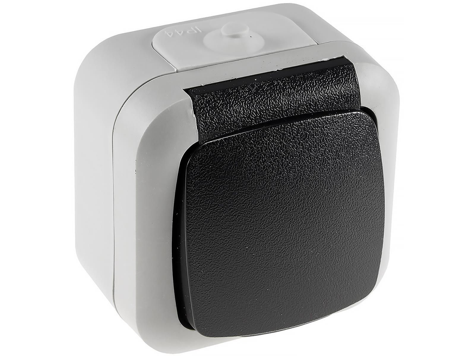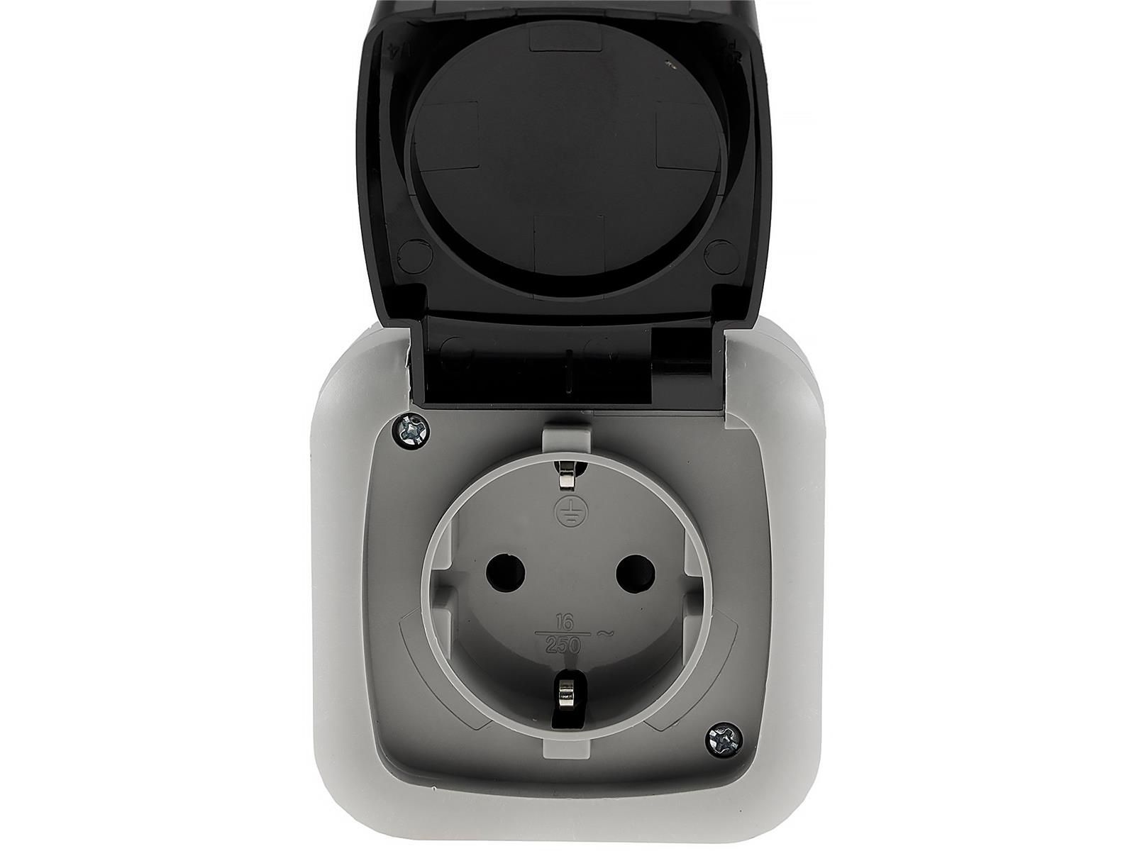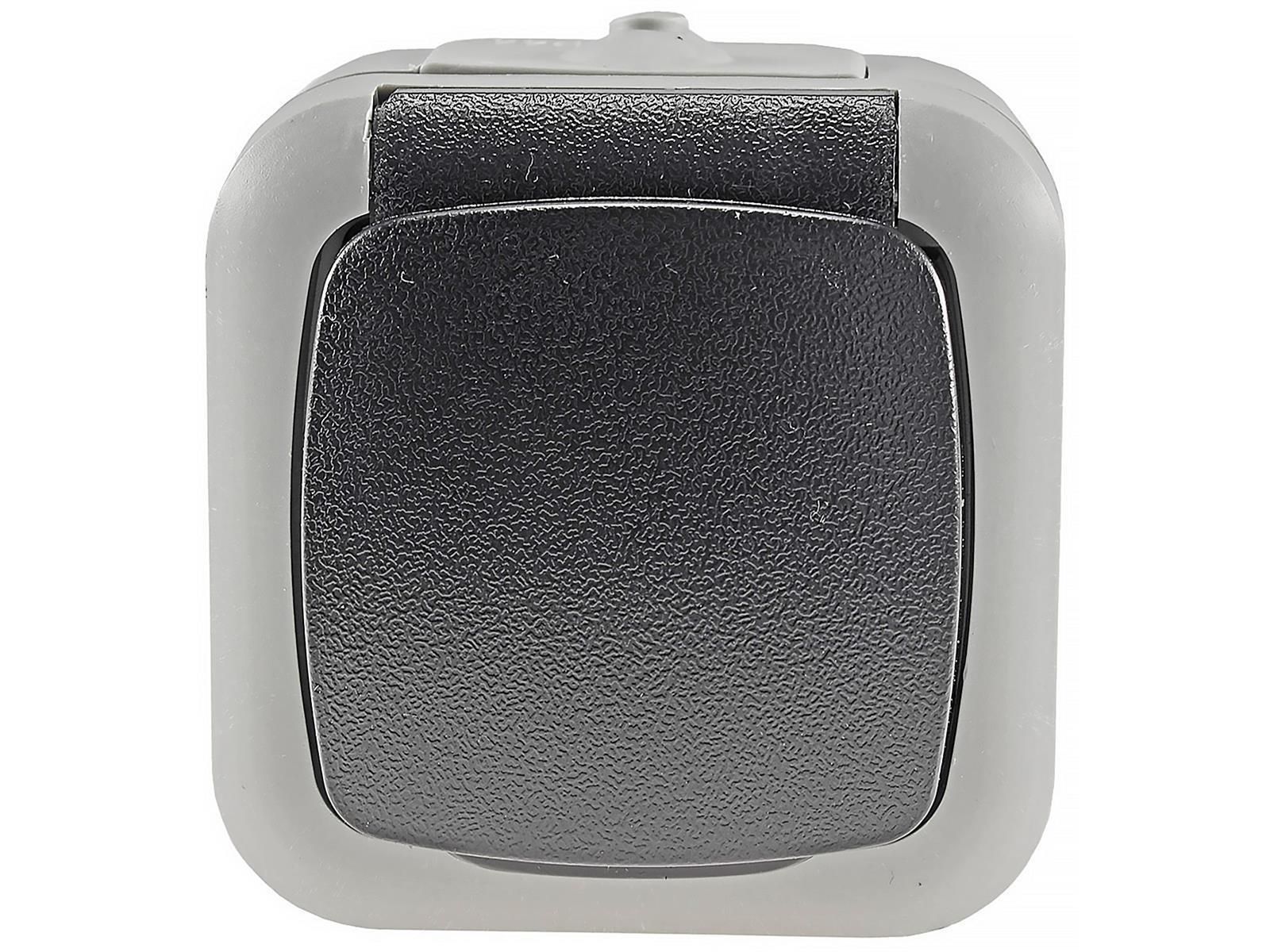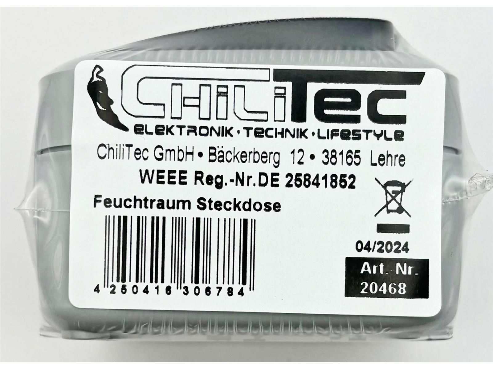 ChiliTec Feuchtraum Steckdose mit Klappdeckel, IP44 250V / 16A, inkl. Aufputz Rahmen, grau