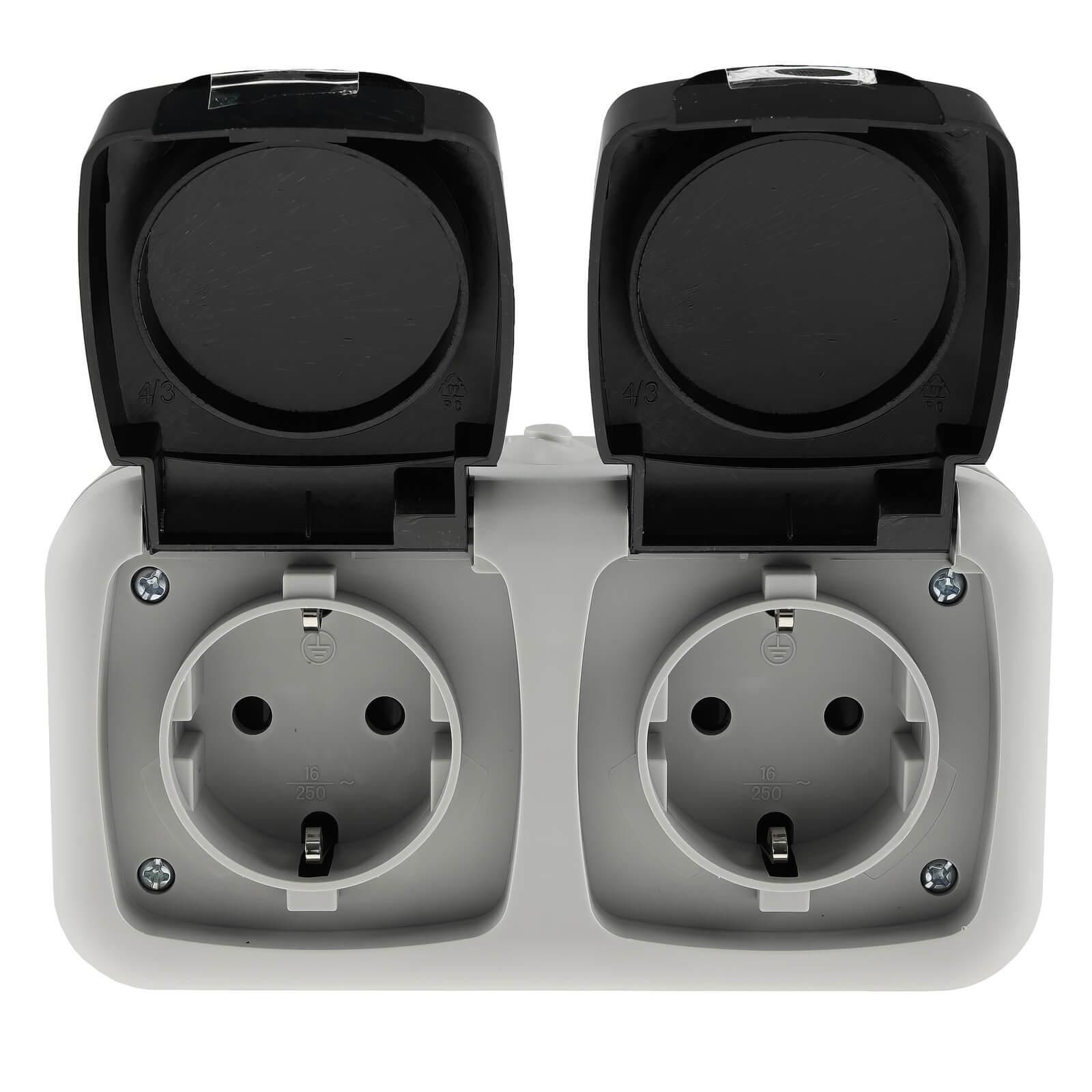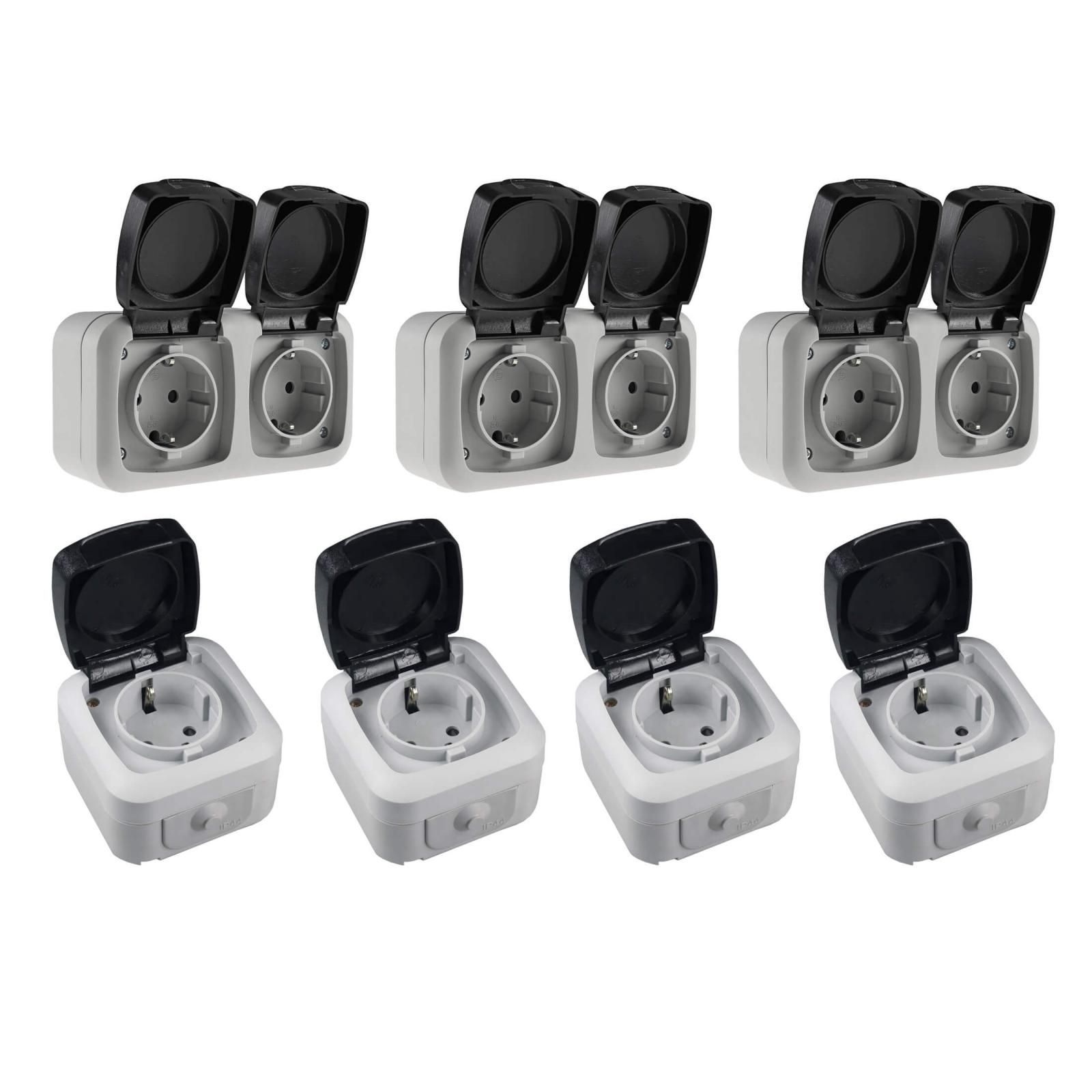 ChiliTec Feuchtraum Steckdosen Set 1-fach 2-fach IP44 Aufputz Keller Werkstatt 7 teilig