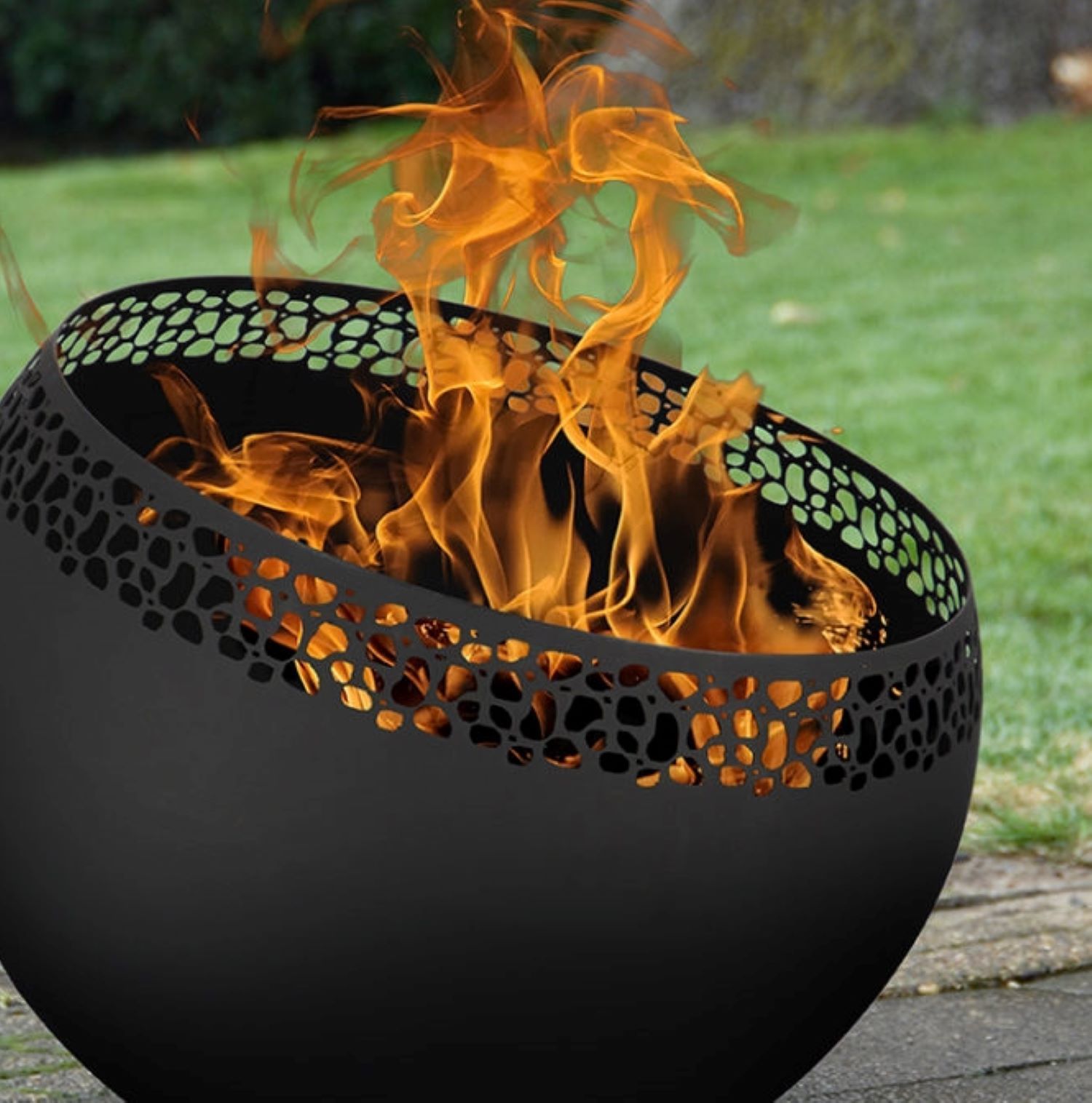 Esschert Design Feuer Ball schwarz 58cm Korb Stelle Schale Terrassen Ofen Metall Lager Laser Cut
