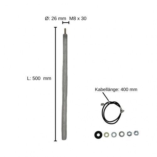 FeuerAnker Stab Magnesium Anode Isoliert Ø 26 Länge 500 mm M8x30 Schutzanode