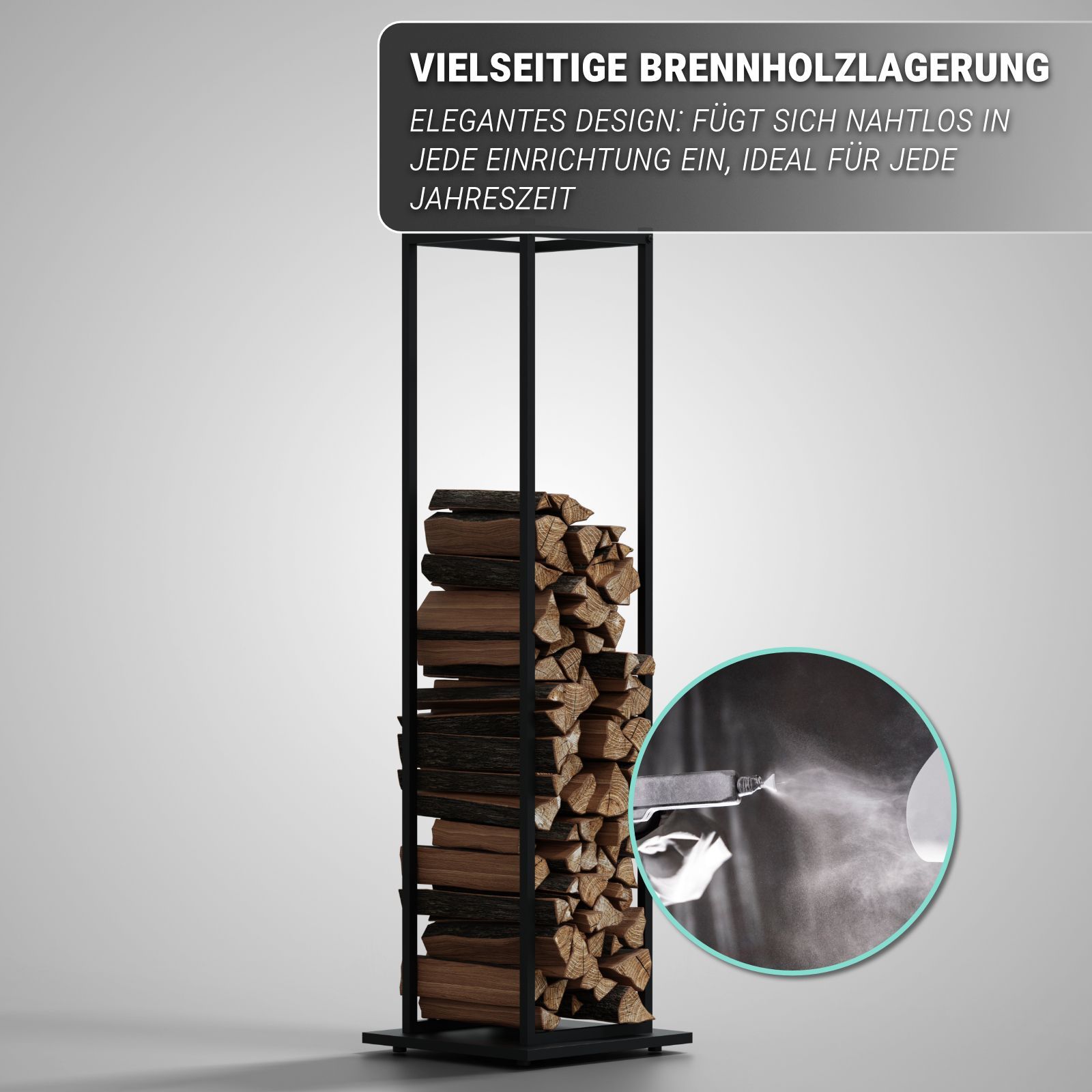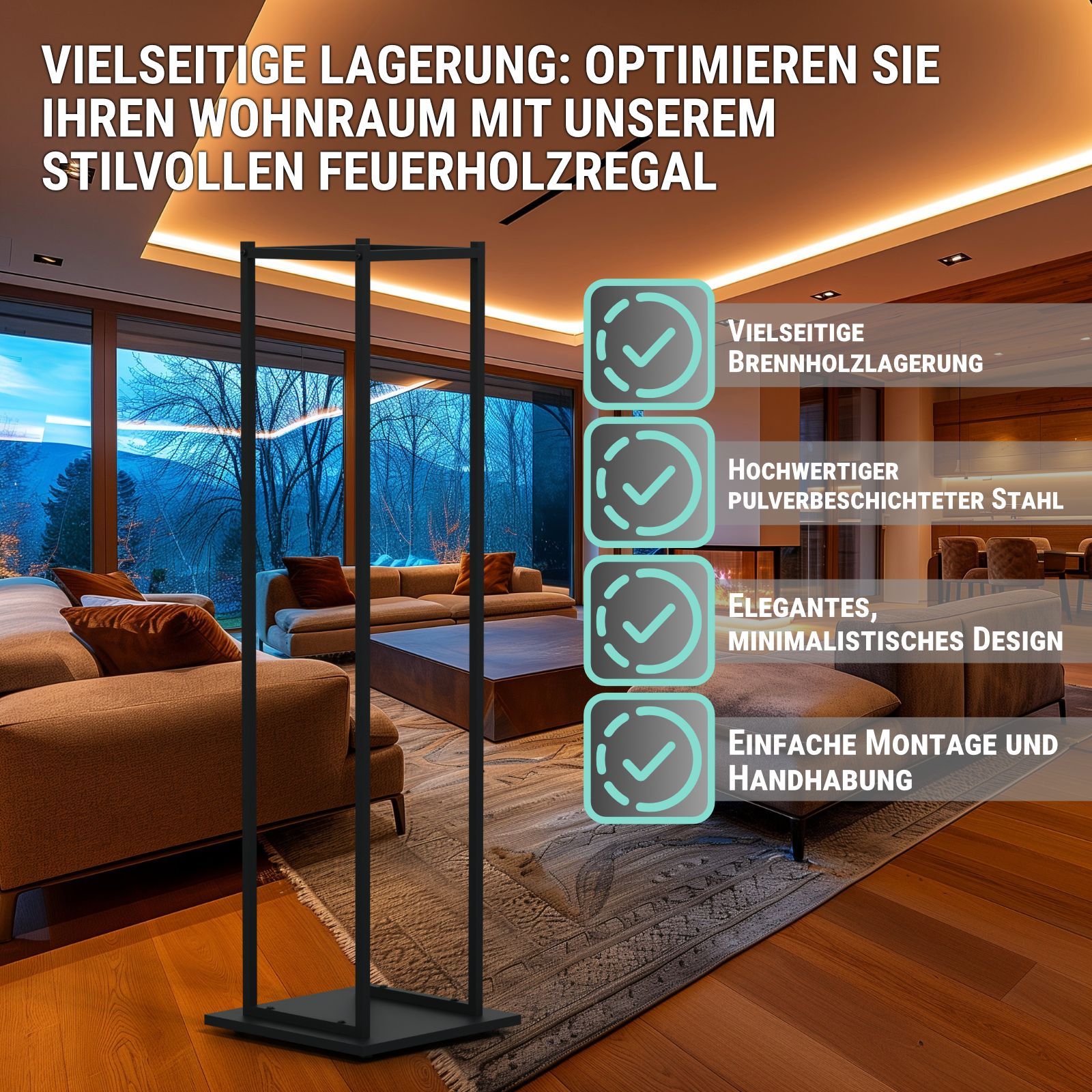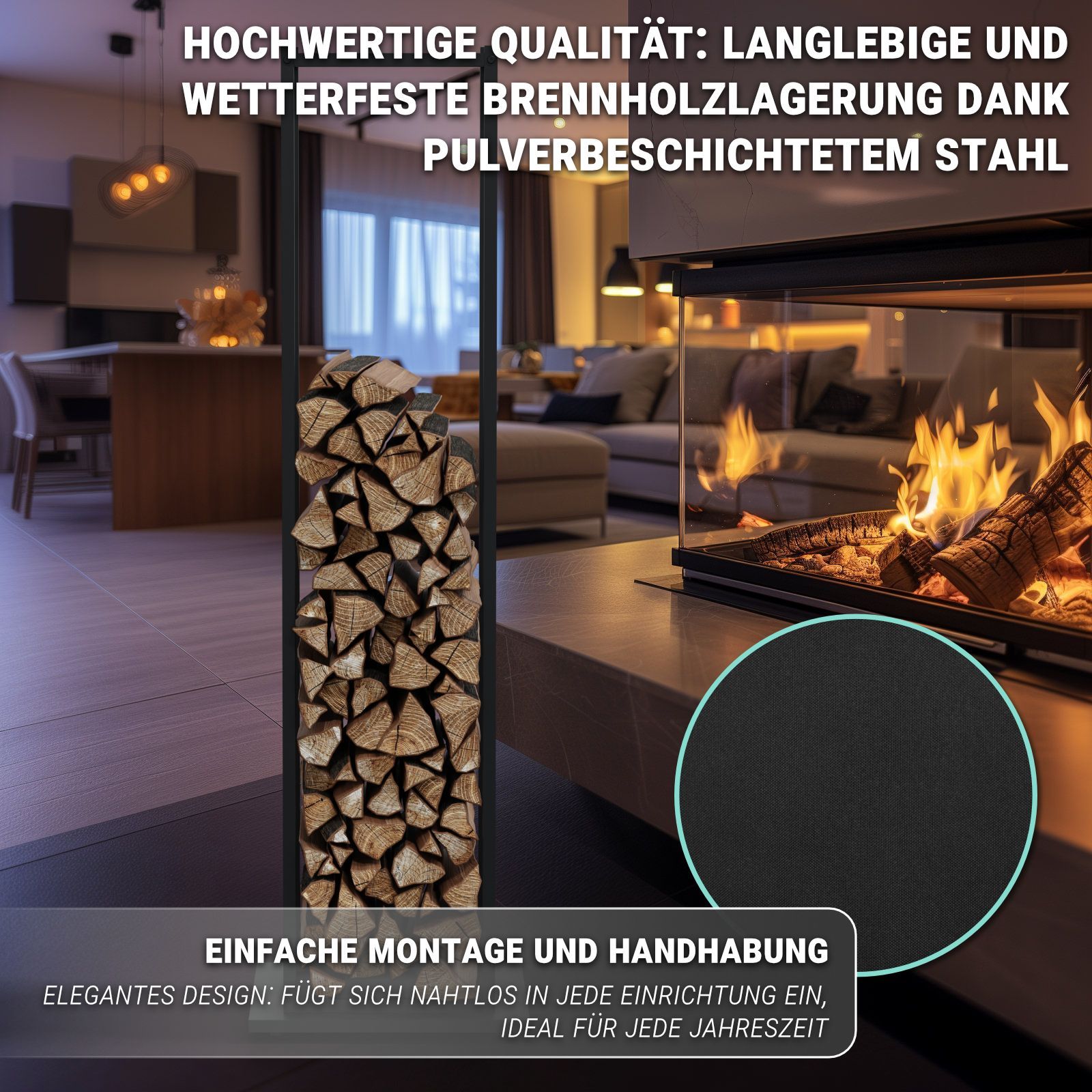 Feuerholzregal 33x33x115cm Kaminholz Holzlager Brennholz Stahl Stapelhilfe Schwarz