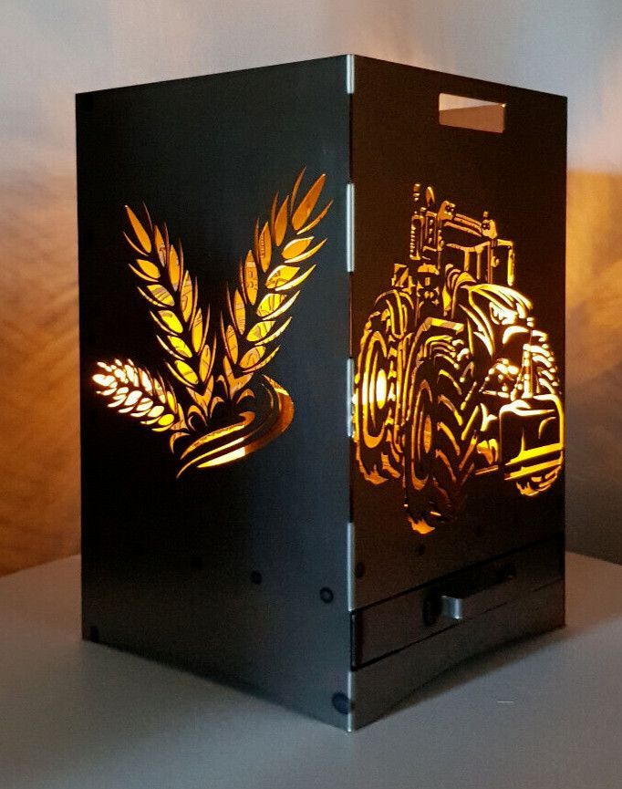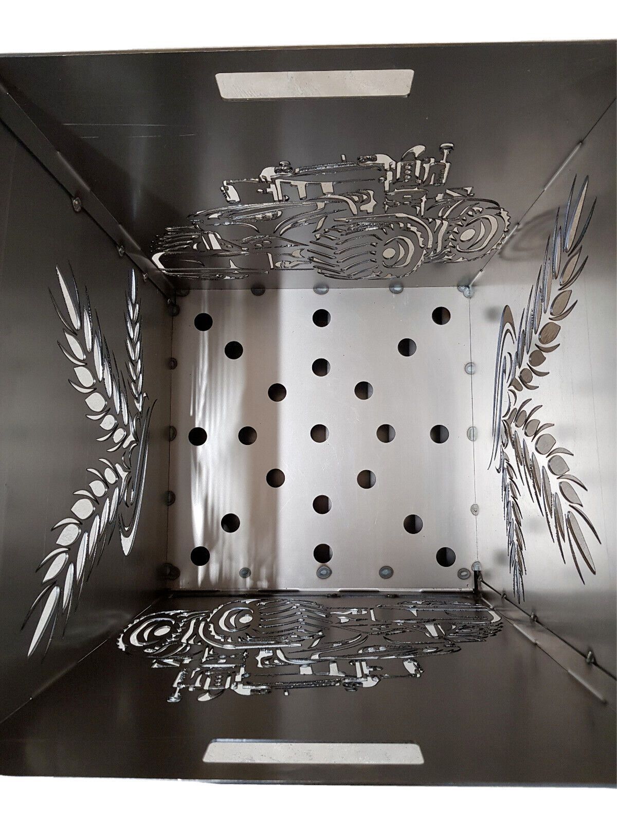 Feuerkorb Fendt mit Ascheschublade 40x40x60 cm Feuertonne Traktor Grill