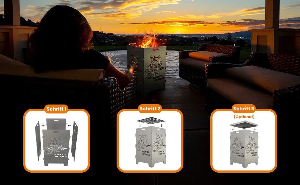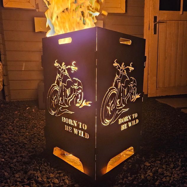 Feuerkorb mit Chopper Motiv - Born to be wild - 2 fach Laserung