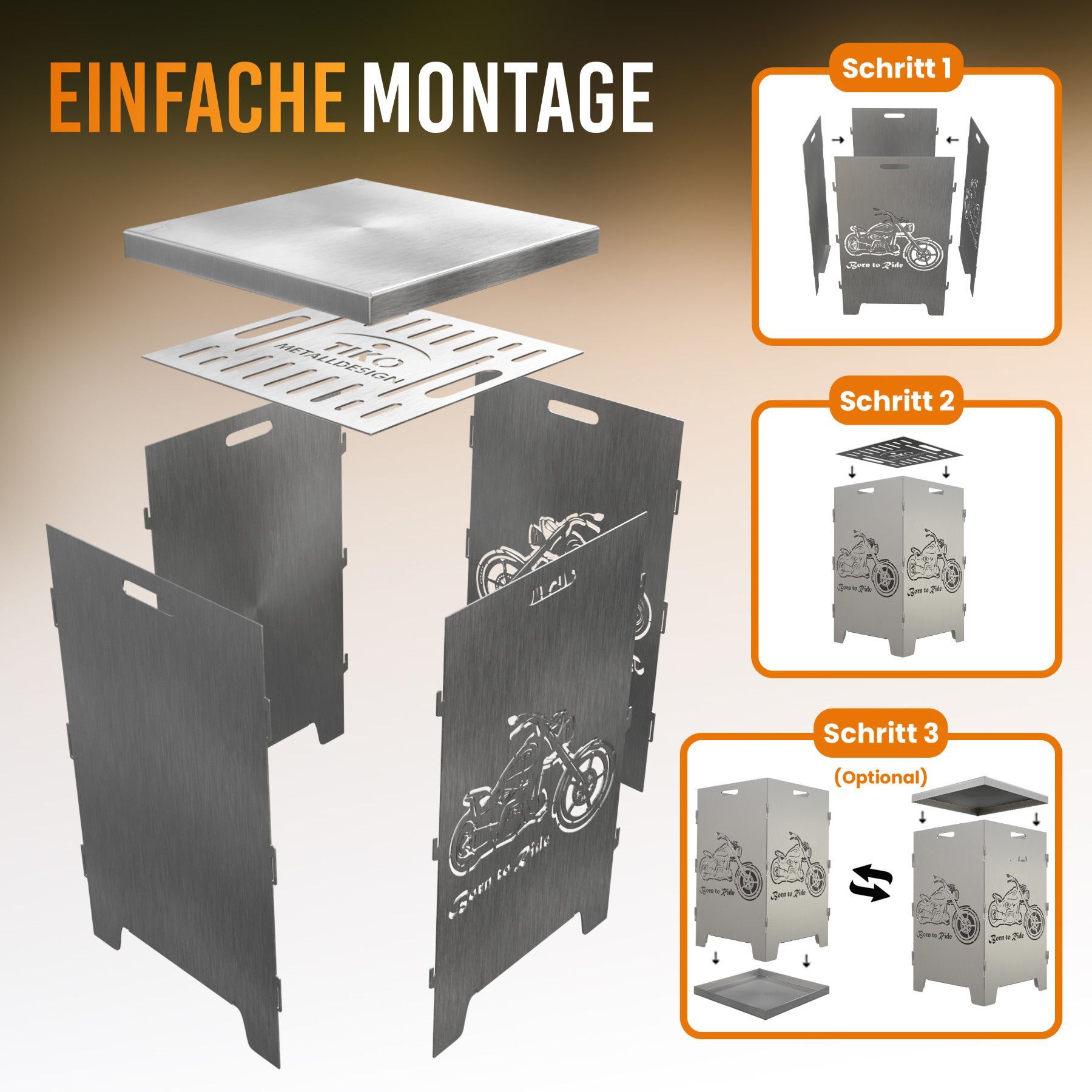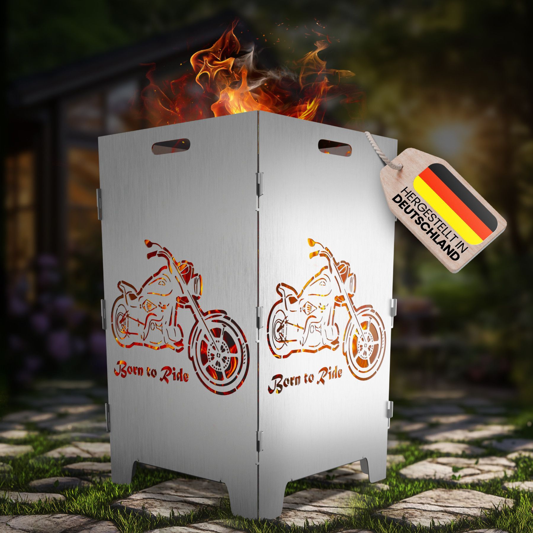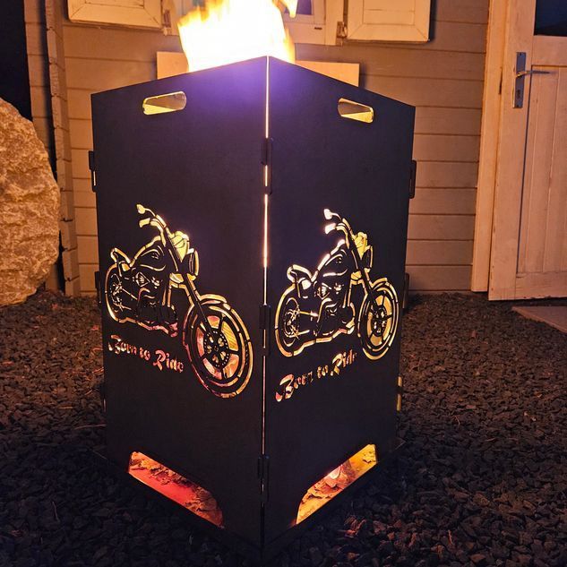 Feuerkorb mit Chopper Motiv - Born to ride - 2 fach Laserung