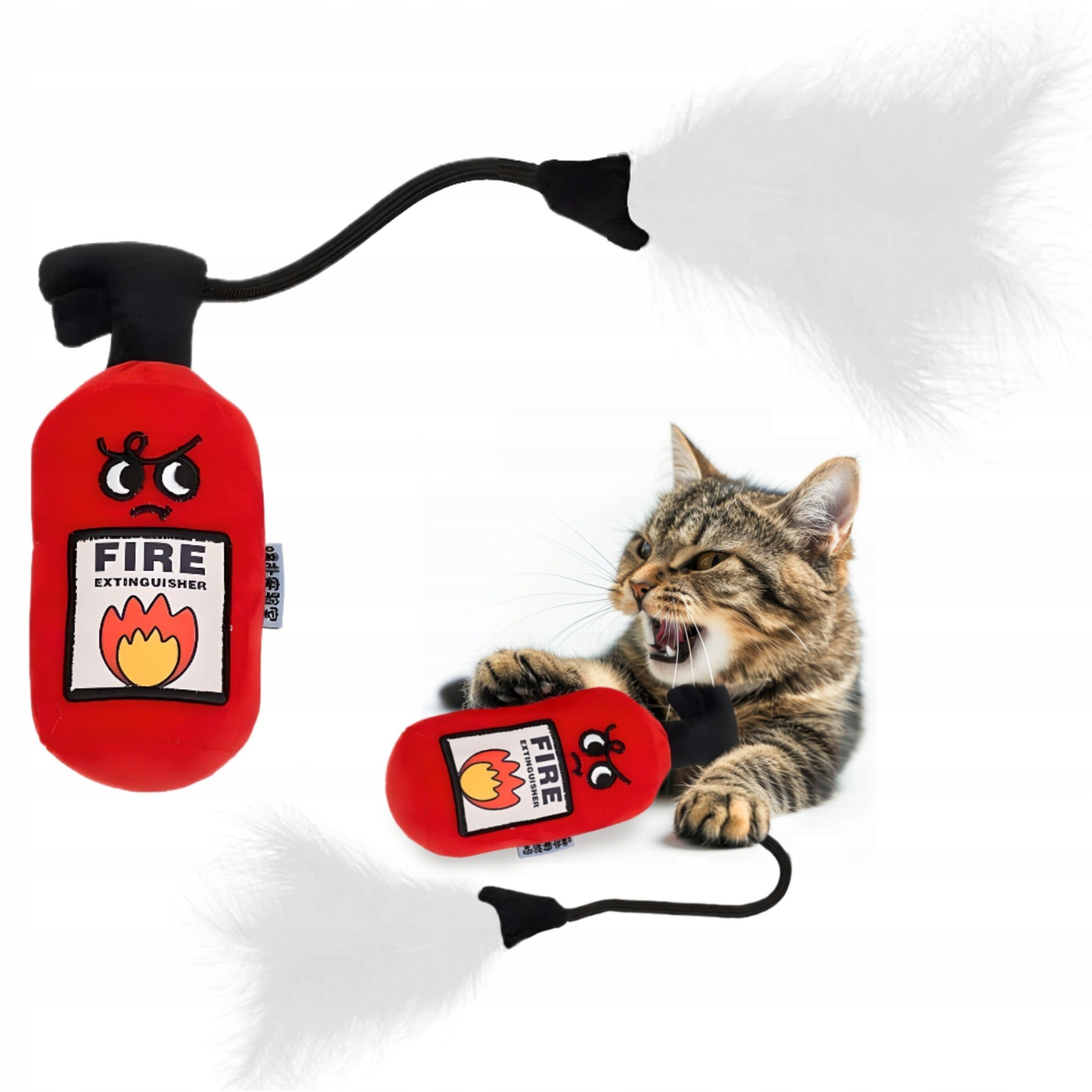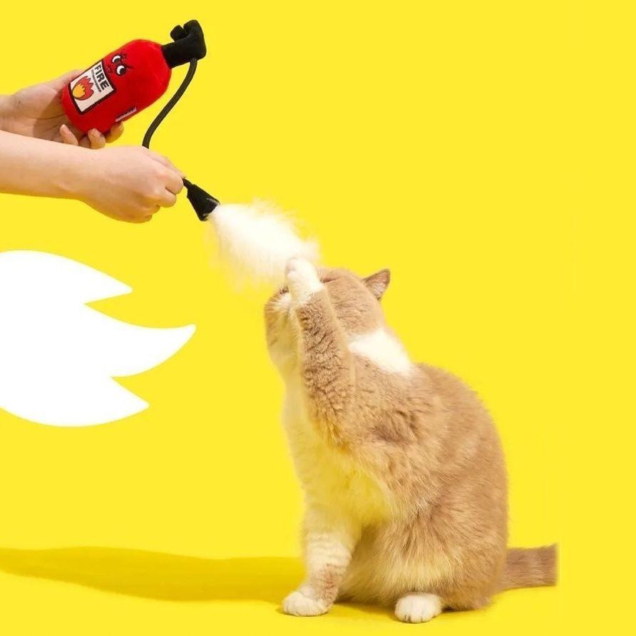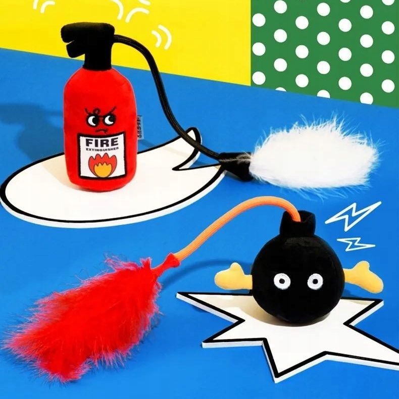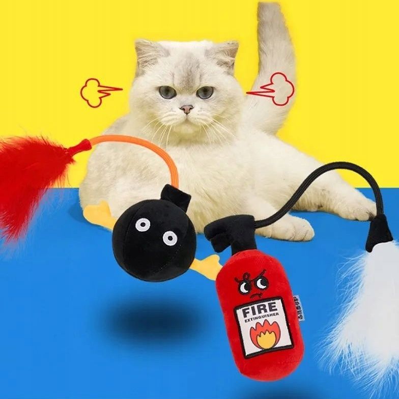 Feuerlöscher Katzenspielzeug mit Federn und Glocke Massiv Langlebig