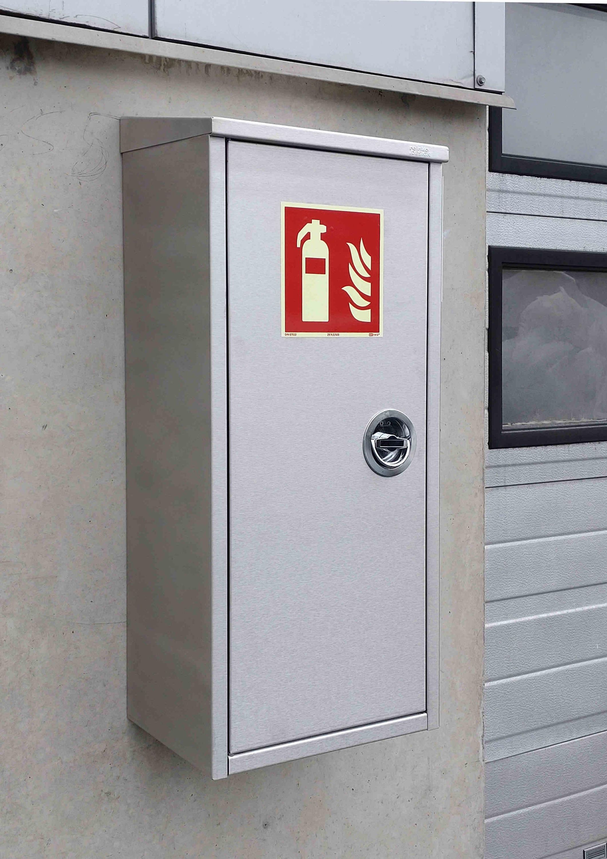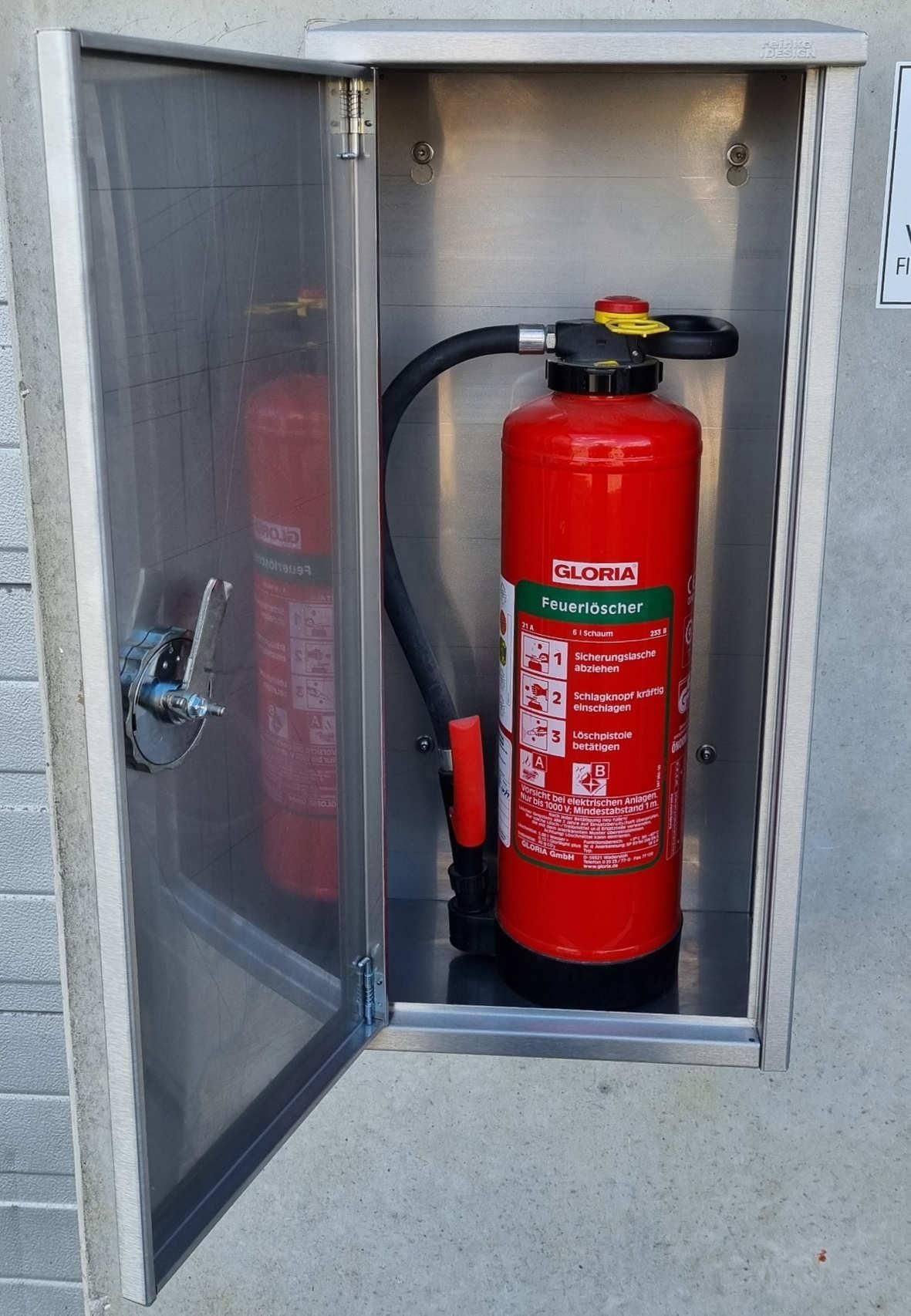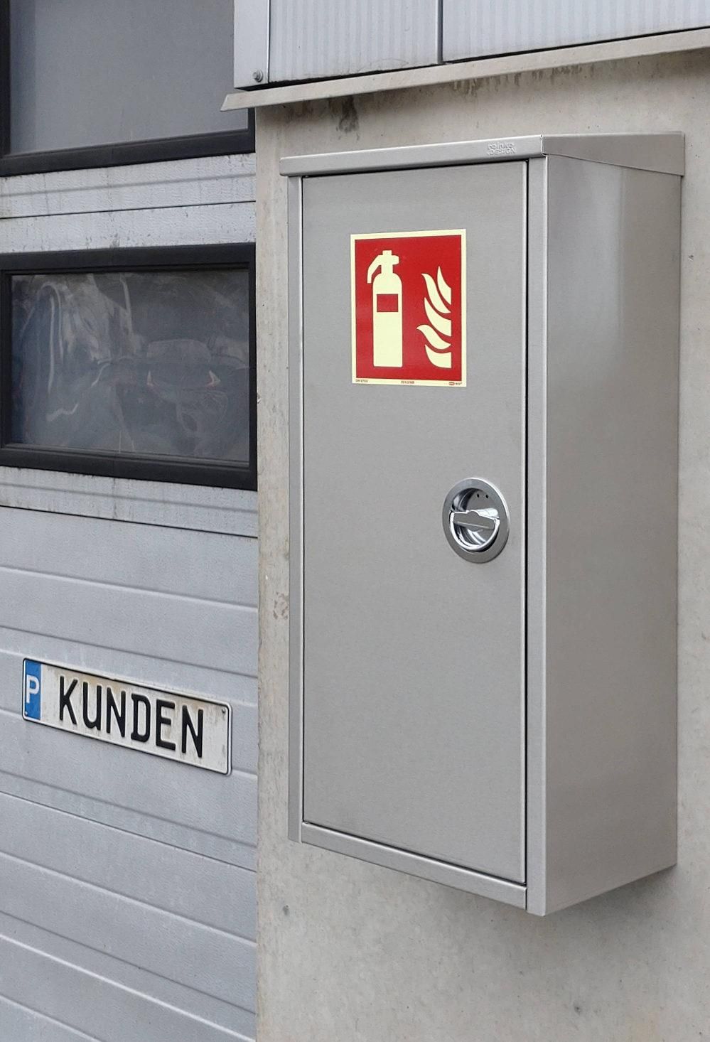 Feuerlöscherkasten für Innen & Außenbereich in Edelstahl BHT: 34x75x23cm