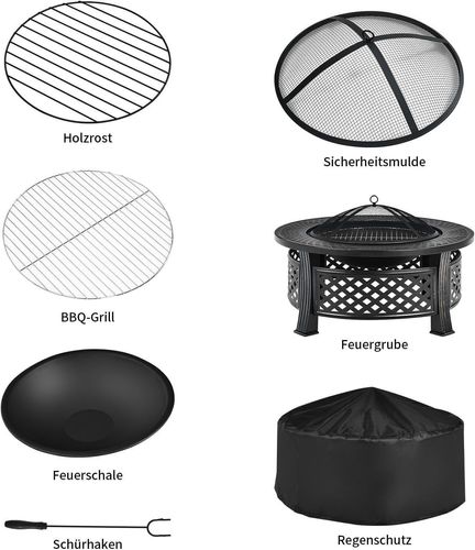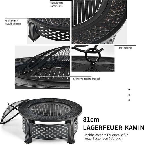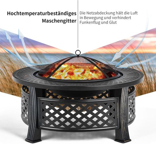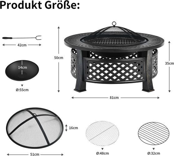 Feuerschale, Feuerstelle mit Grillrost, Feuerkorb mit Funkenschutz, Feuerschale