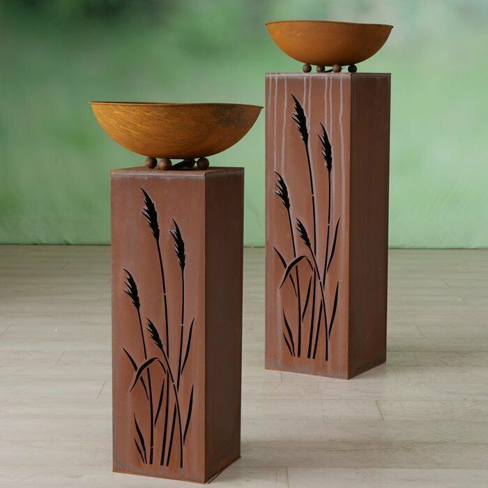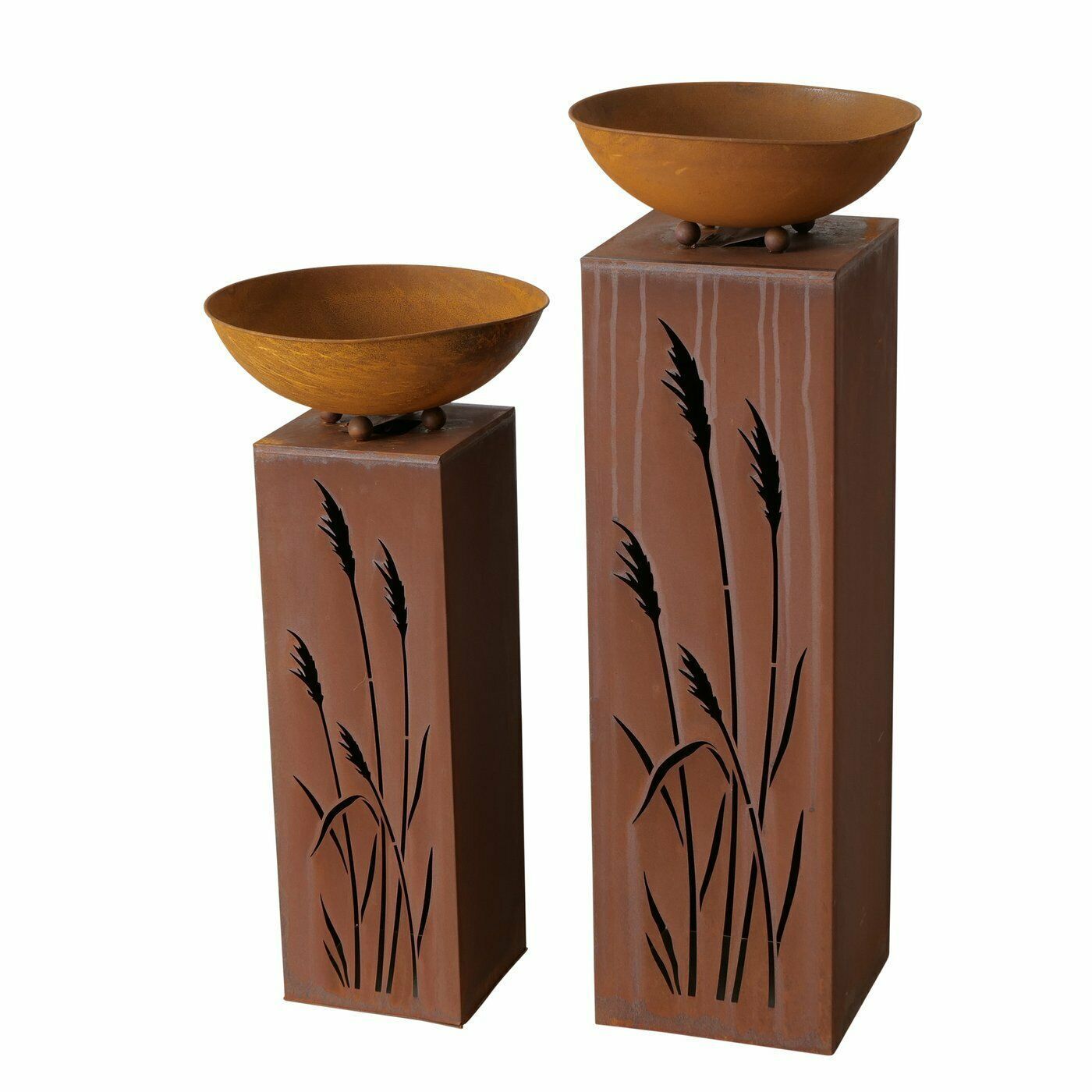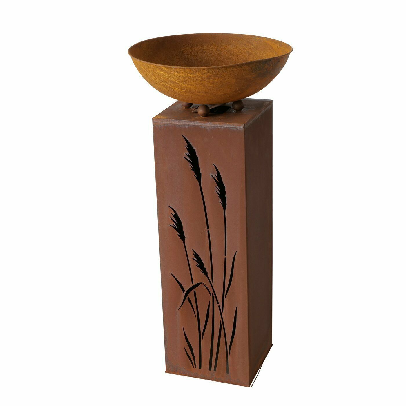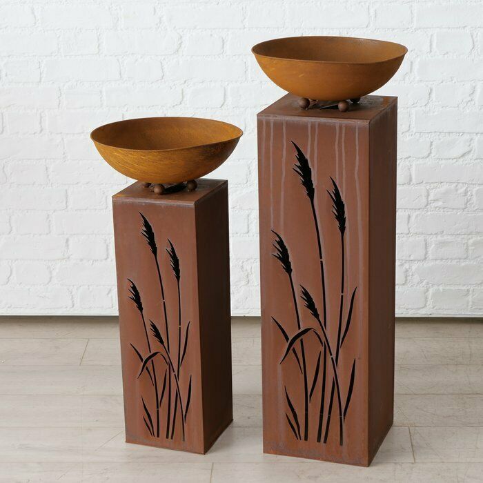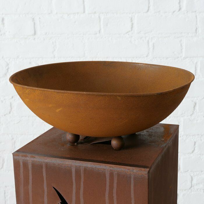 Boltze Feuerschale Pflanzschale plus Deko Säule im Set Rost Optik Braun Garten H. 74 cm