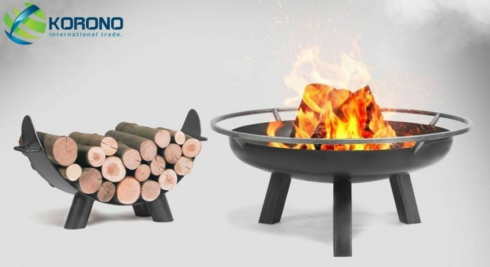 Feuerschale und Holzregal aus Stahl - Feuerkorb Grillfeuer Feuerstelle - Ø 80 cm
