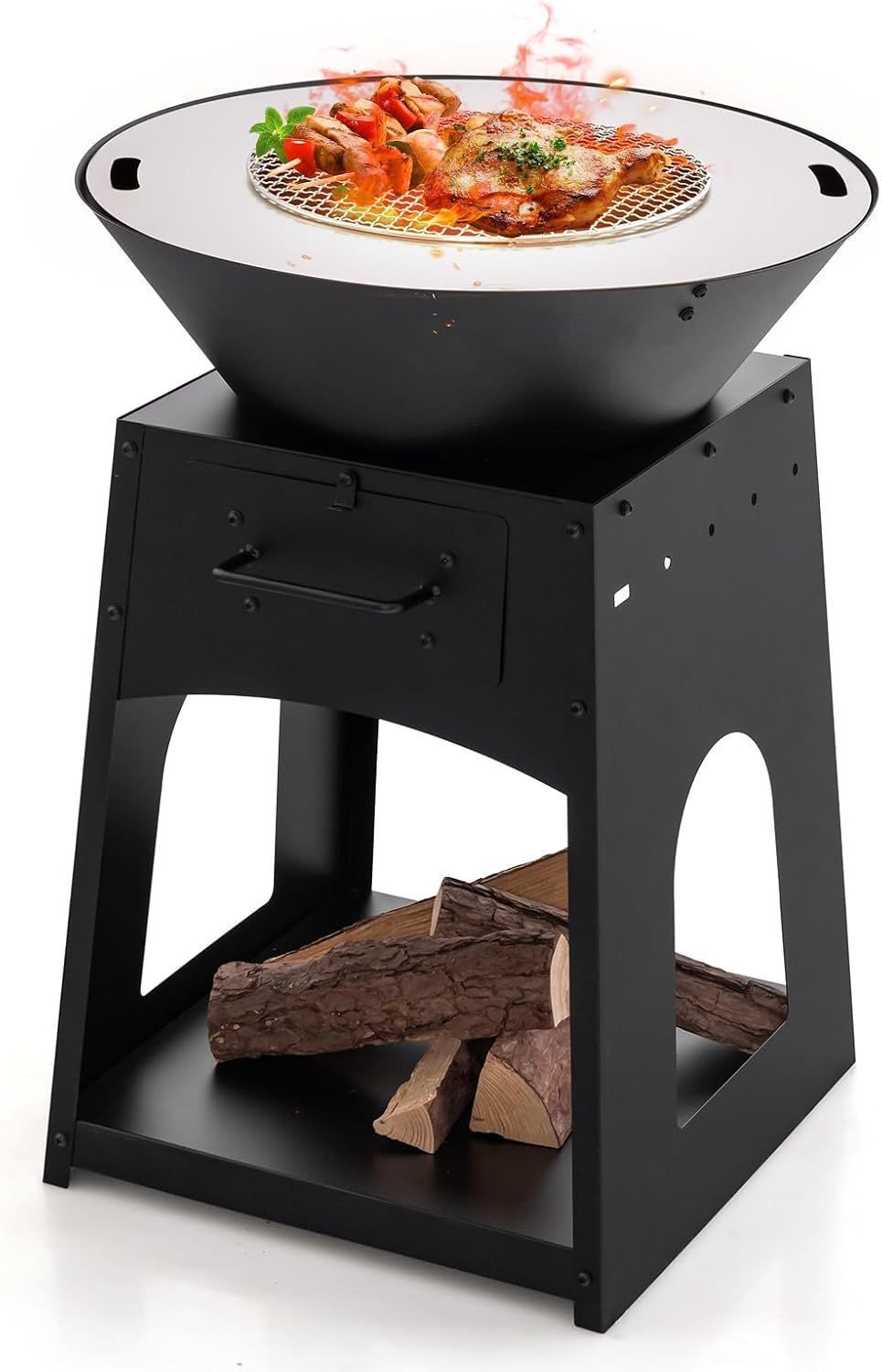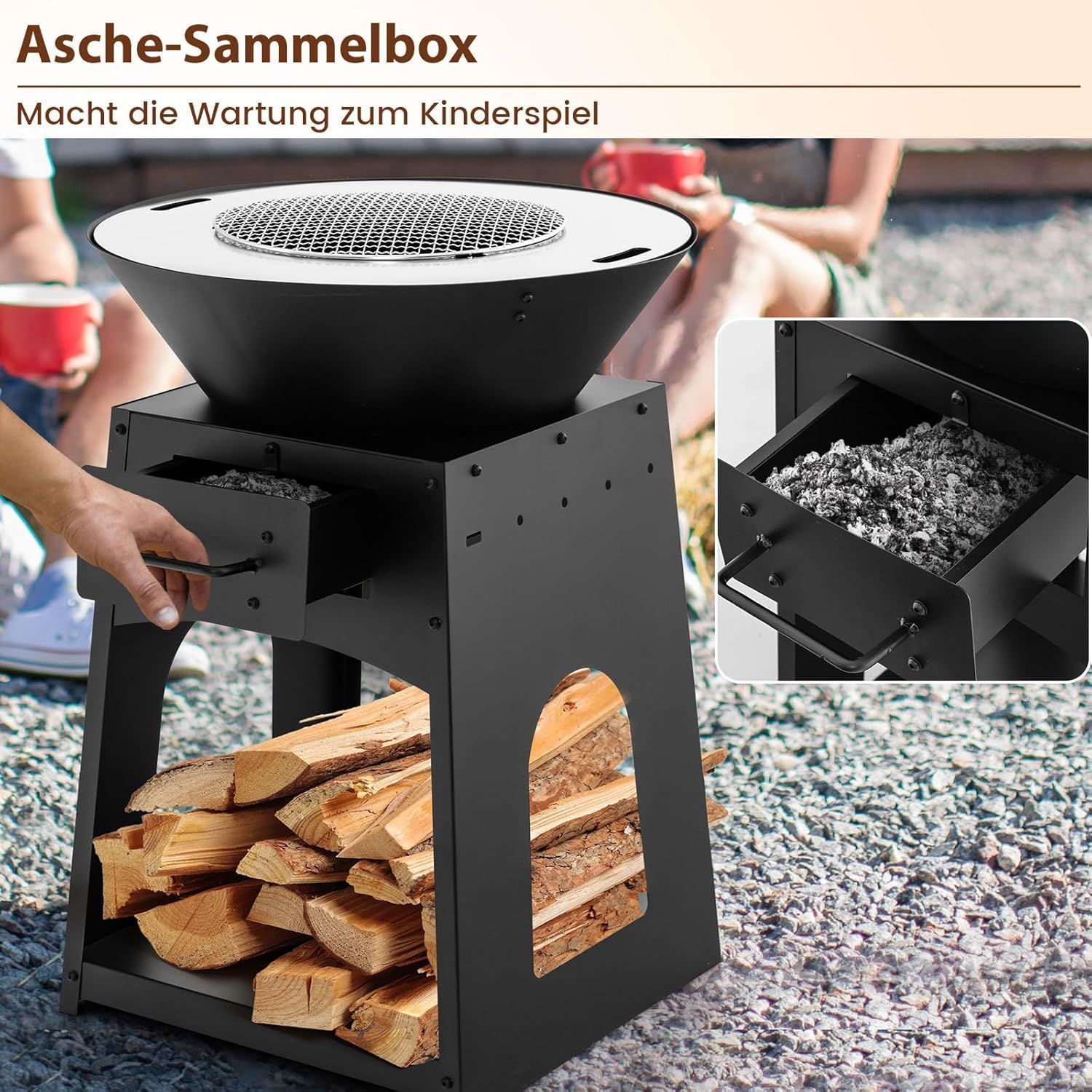 Feuerstelle mit Grillrost, Aschekasten, unterem Staufach, Feuerschale