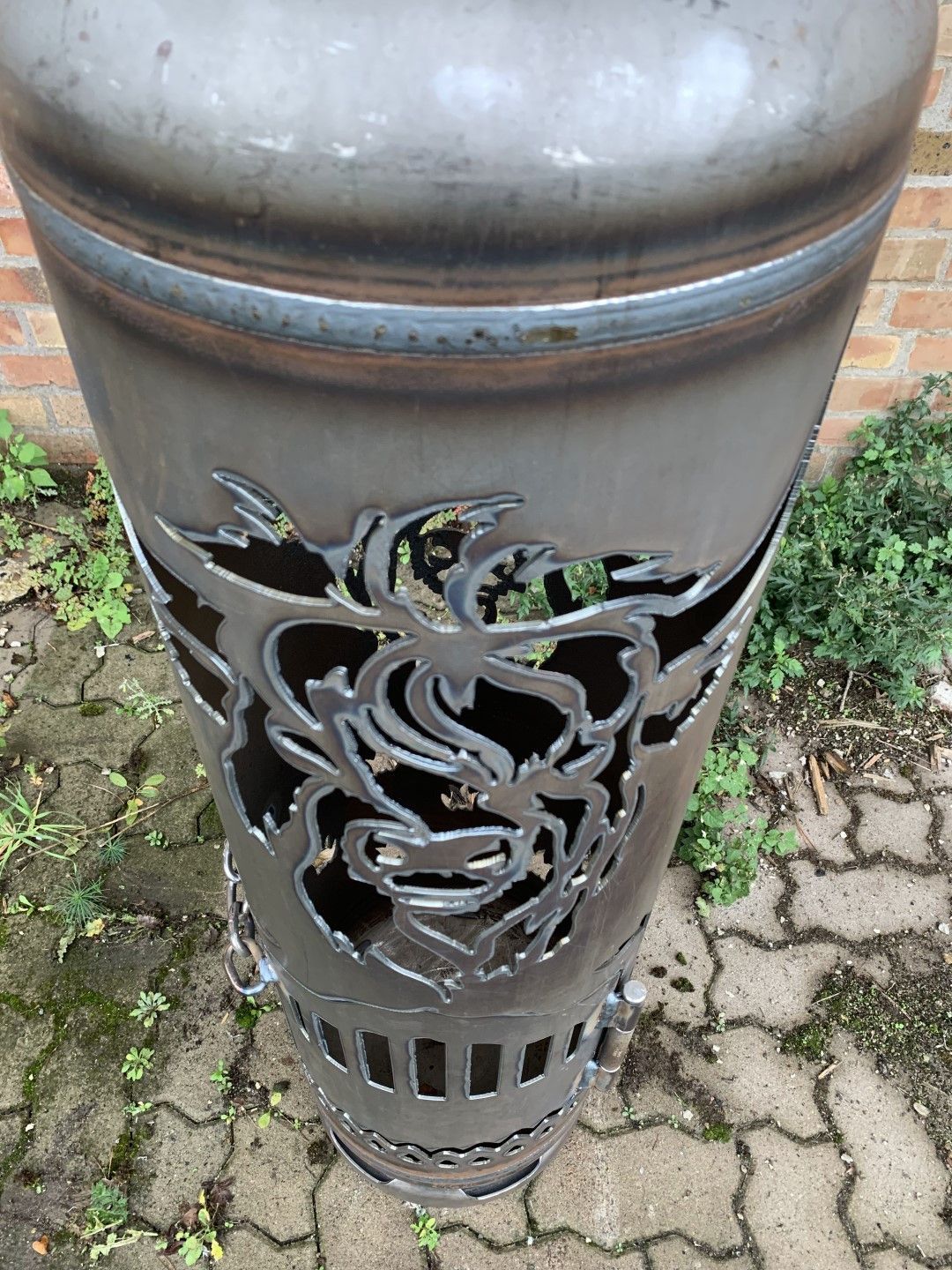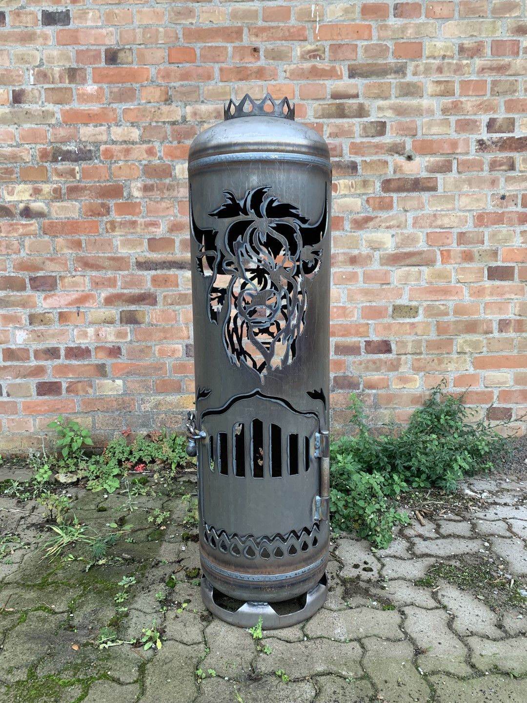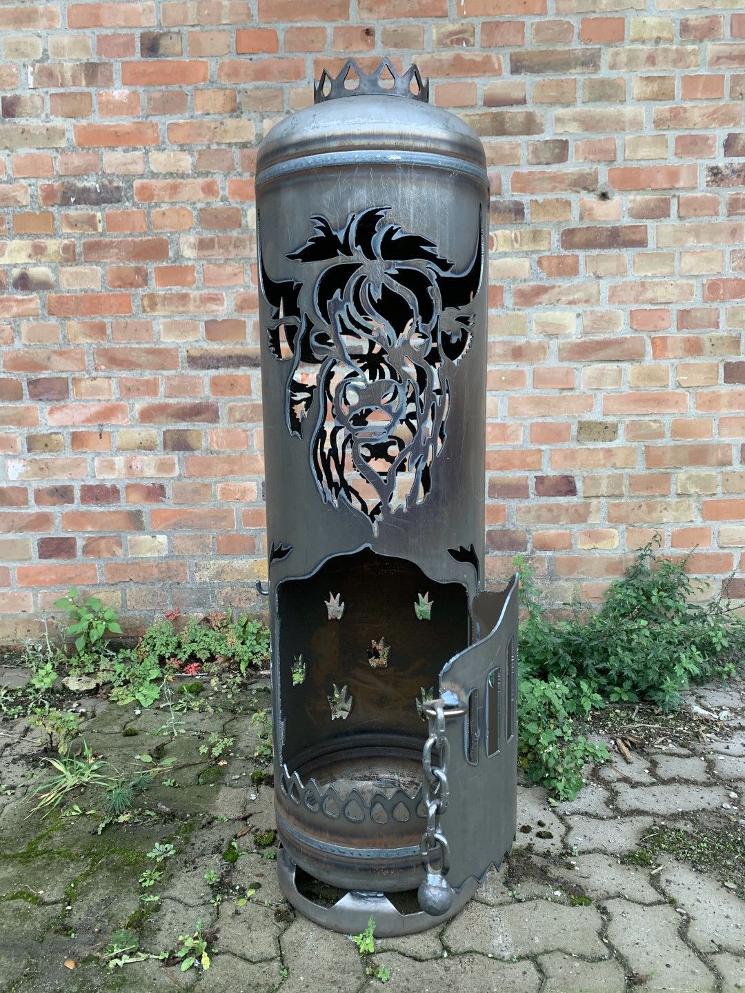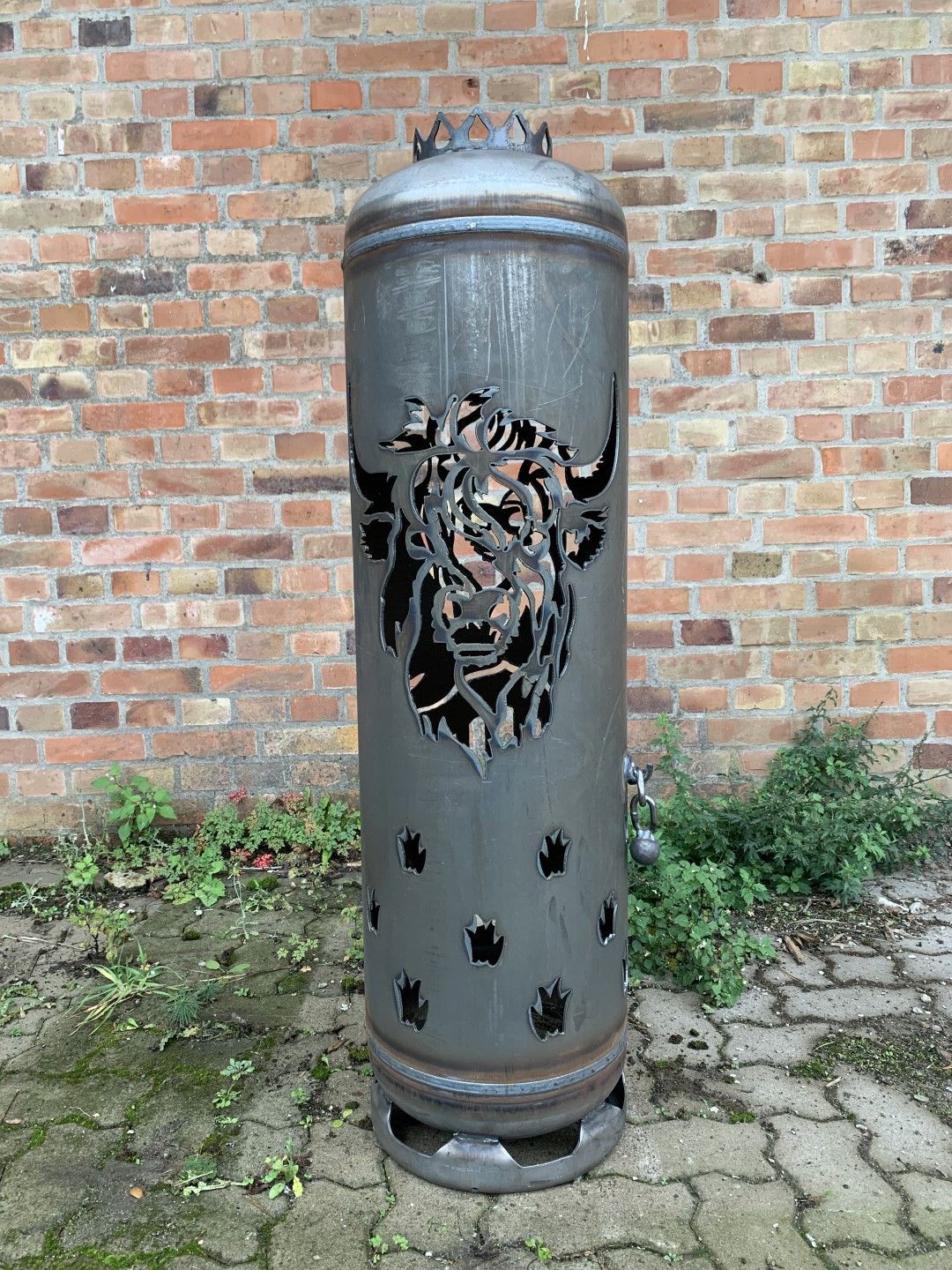 Feuerstelle Schottisches Hochlandrind Feuertonne Highland Cattle Rind neue Gasflasche