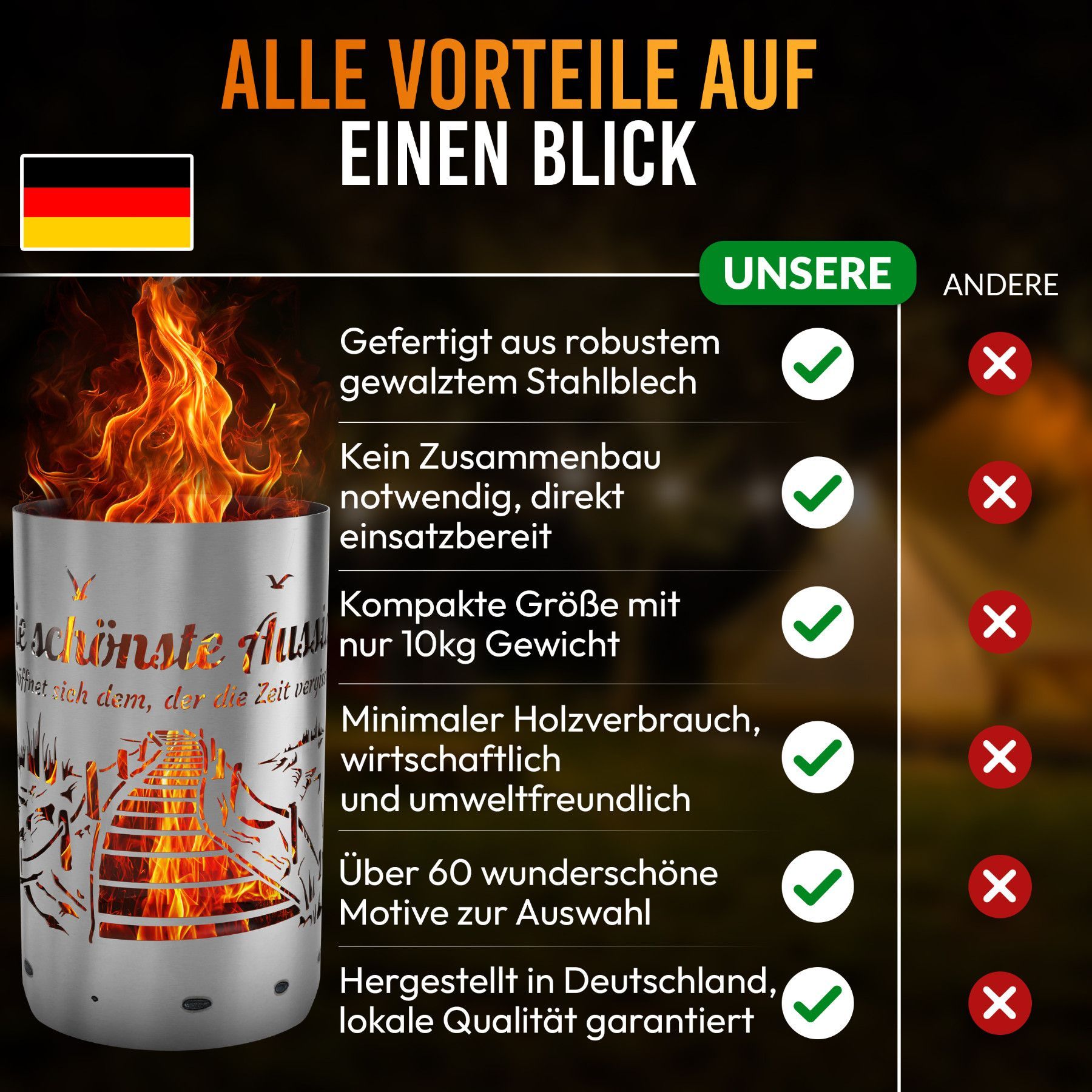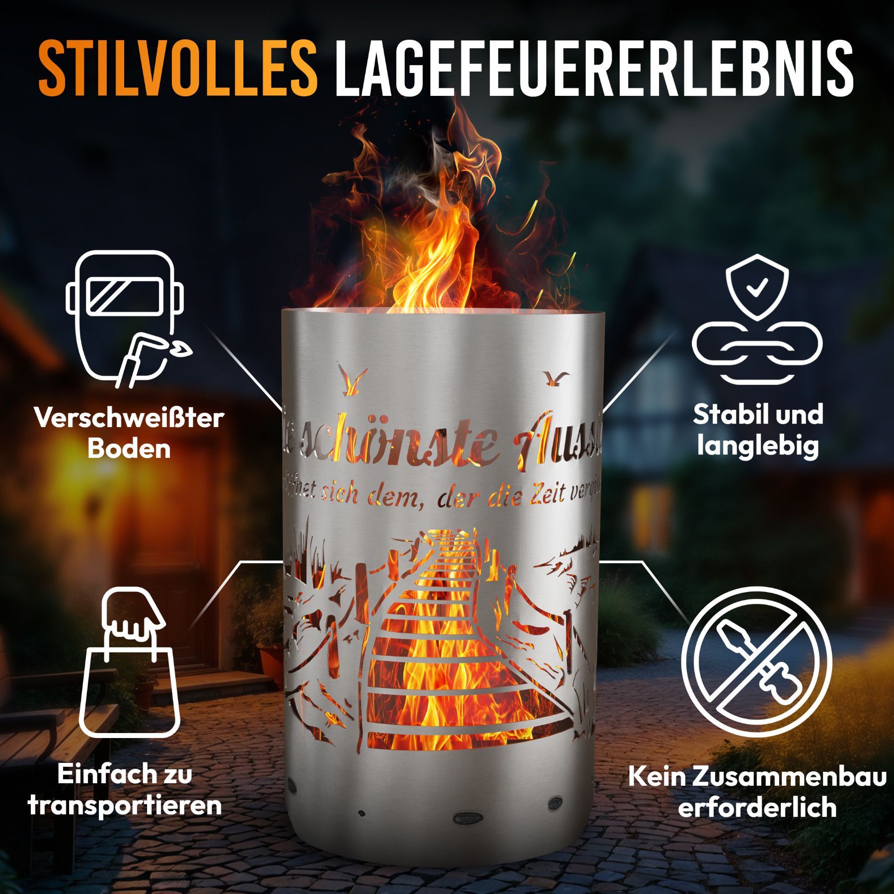 Feuertonne Aussicht / Feuerkorb / Feuerschale mit Motiv - Aussicht