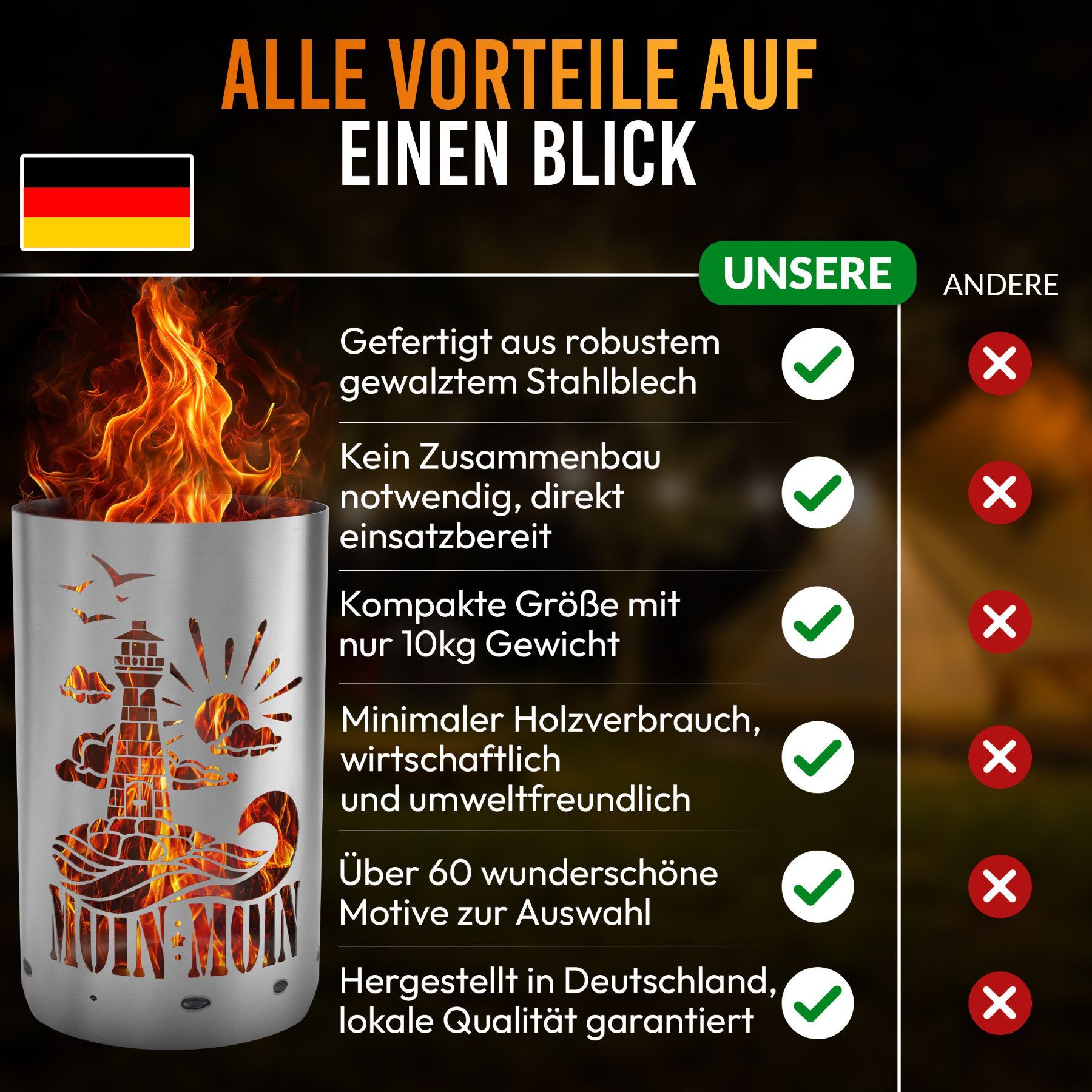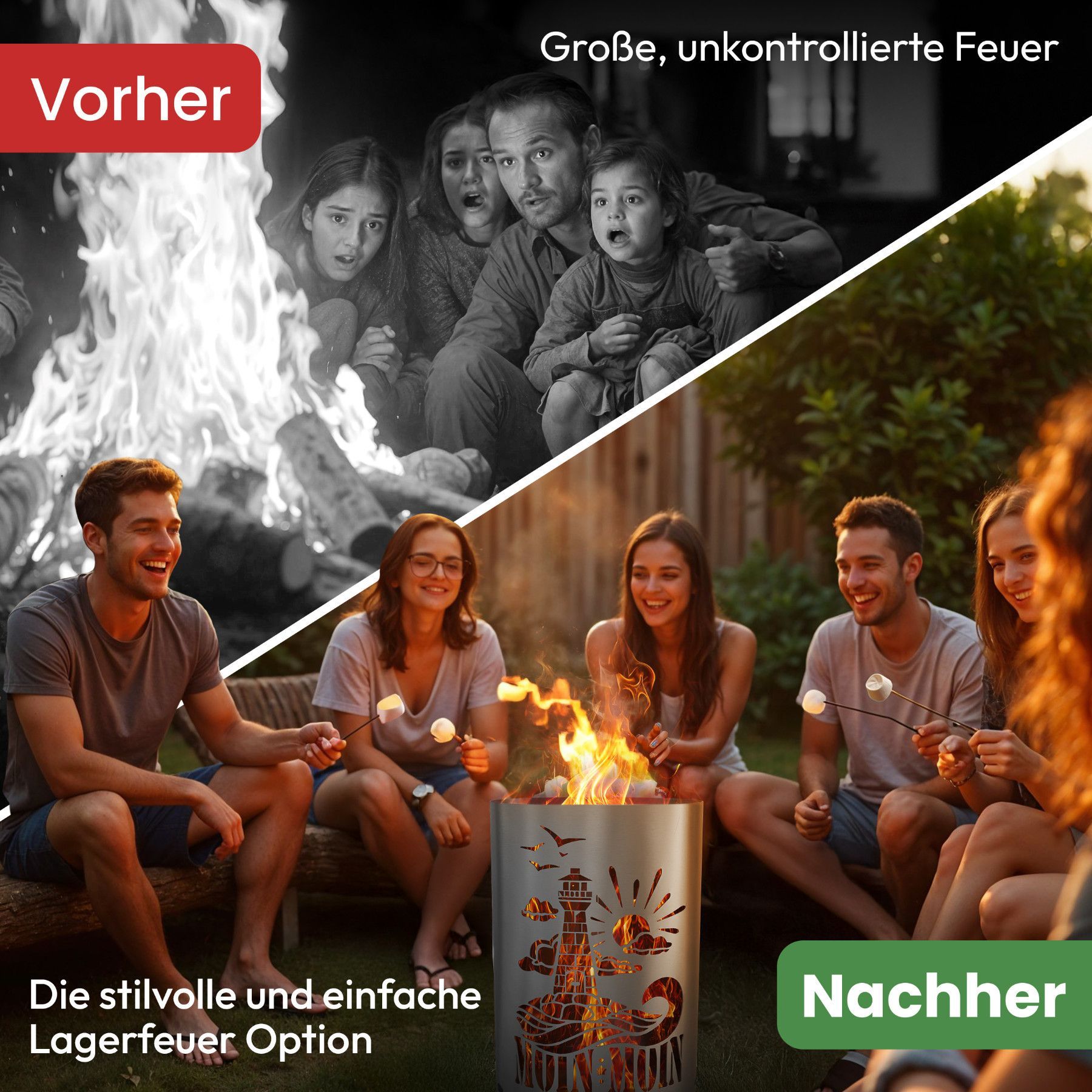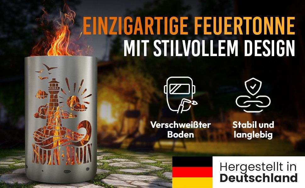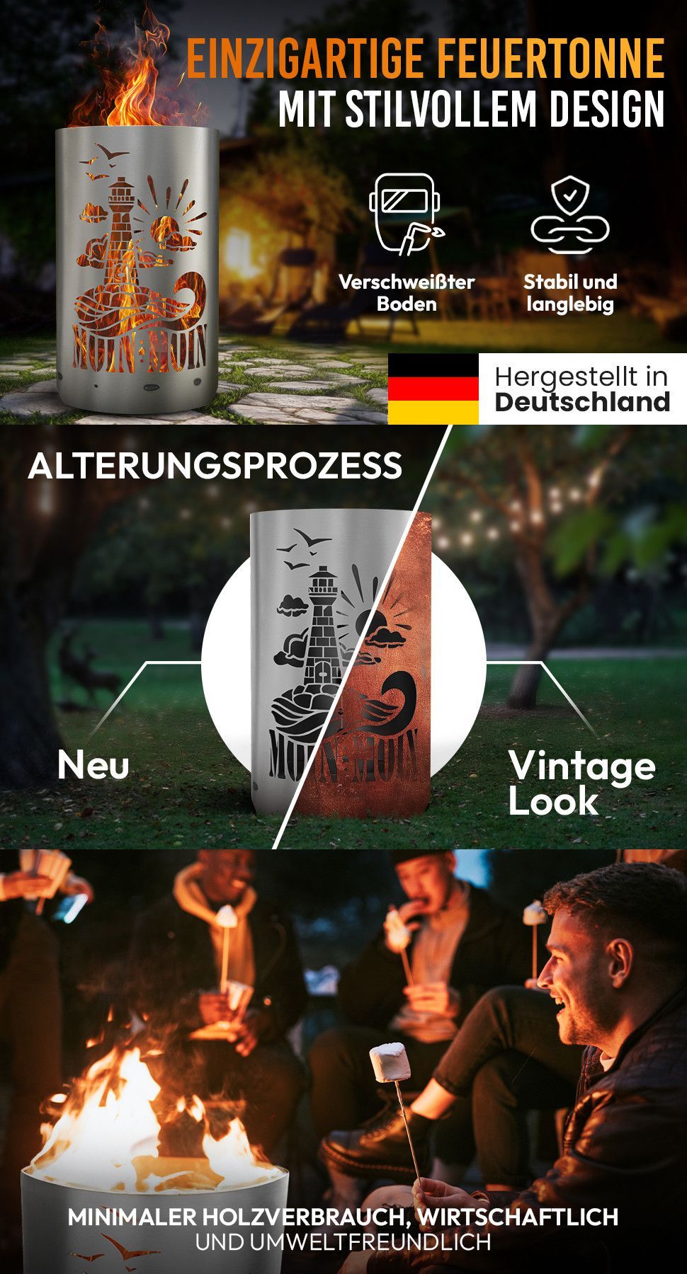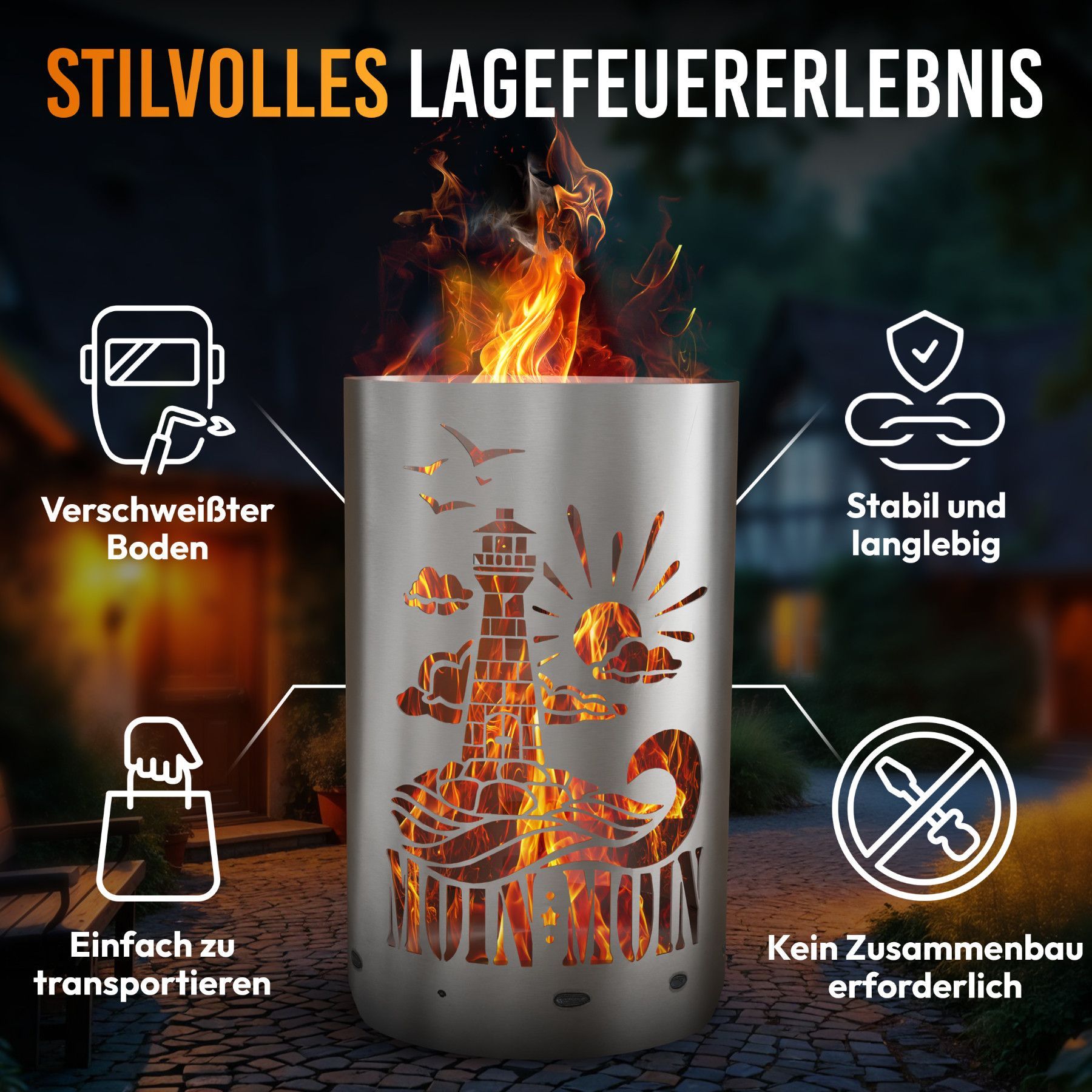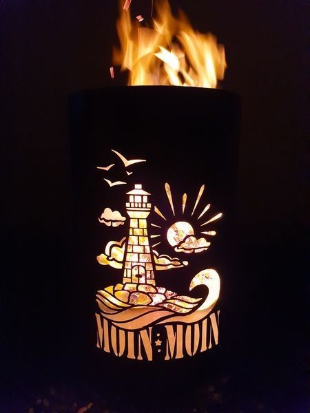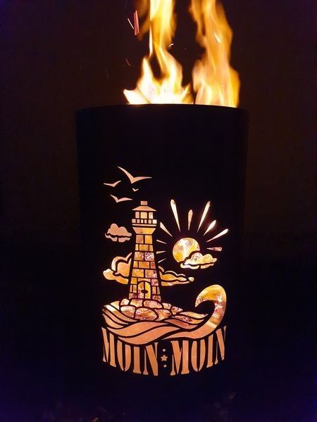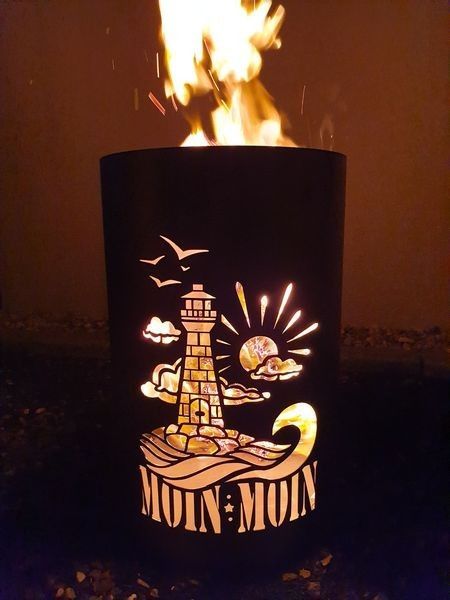 Feuertonne / Feuerkorb / Feuerschale mit Motiv " Leuchtturm - Moin Moin "