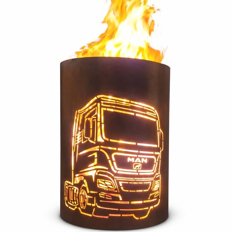 Feuertonne / Feuerkorb mit MAN LKW Motiv - Robuste Feuersäule aus Stahl
